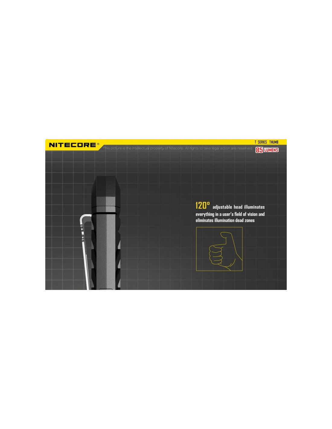 Latarka Nitecore Thumb posiada ruchomą głowicę (zakres ruchu: 120 stopni).