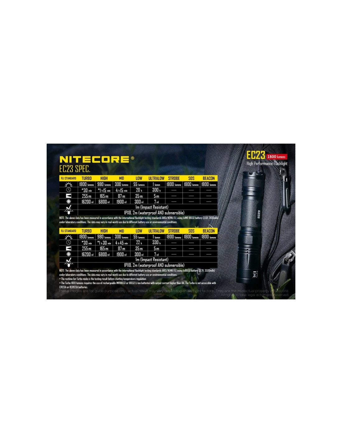 Latarka Nitecore EC23 to innowacyjny projekt powstały z myślą o zapewnieniu klientowi źródła światła o dużej mocy i kompaktowych rozmiarach.