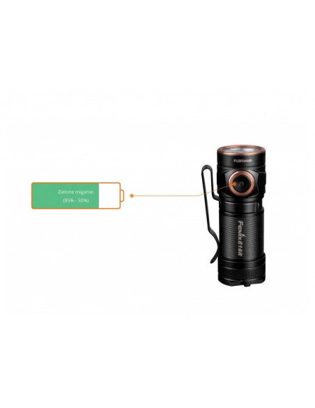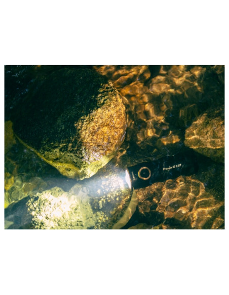 W latarce E18R znajduje się także diodowy wskaźnik poziomu baterii, zabezpieczenie przed przegrzaniem oraz odwróconą polaryzacją. Latarka ma wysoką klasę szczelności IP68, jest zatem odporna na pełne zanurzenia wodzie na głębokości 2 m oraz upadek z wysokości 1 m.