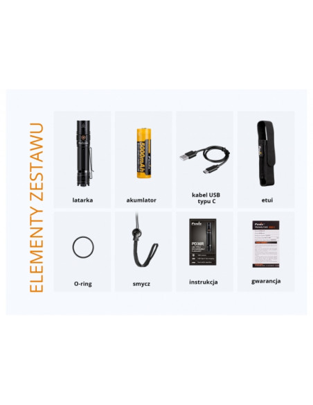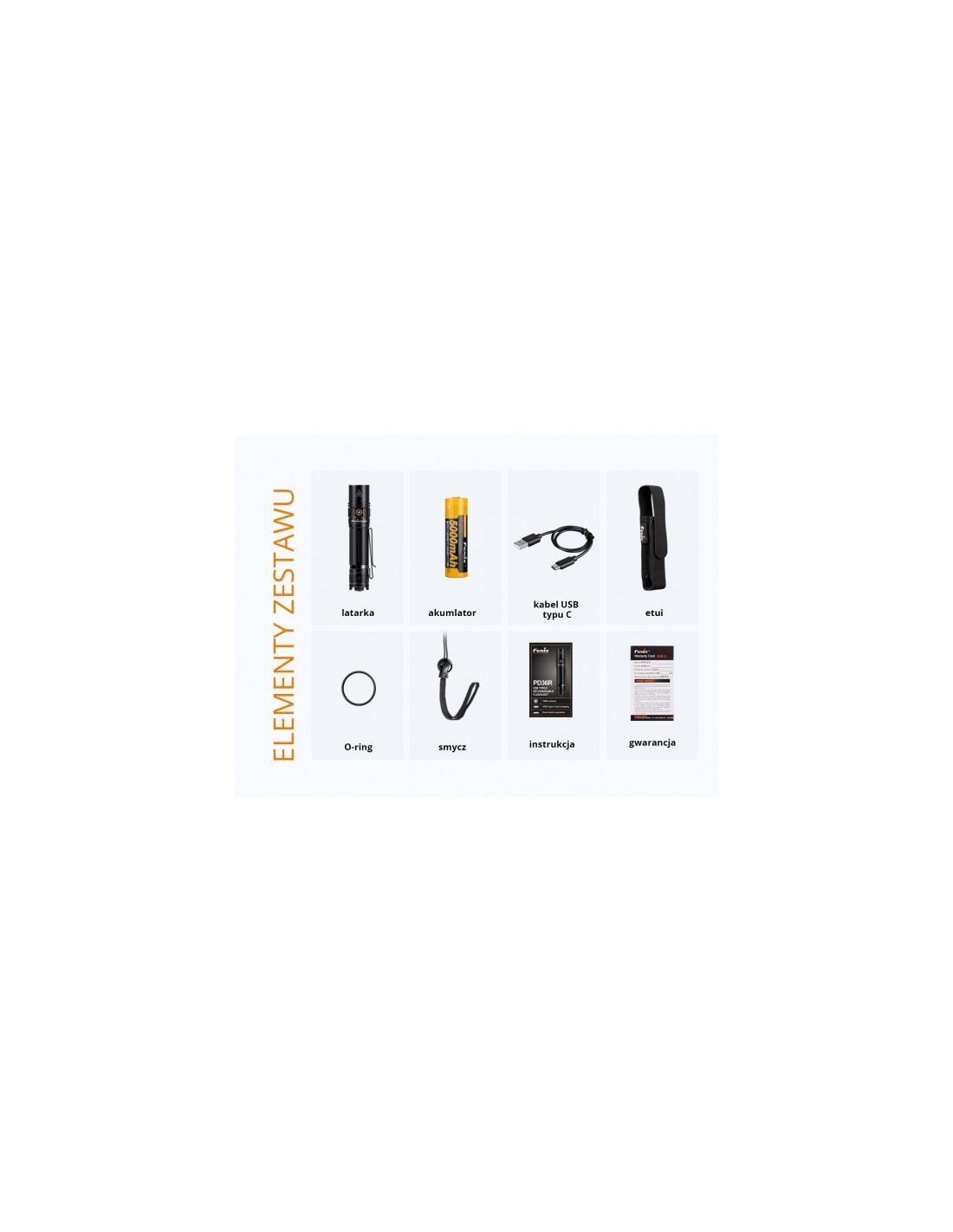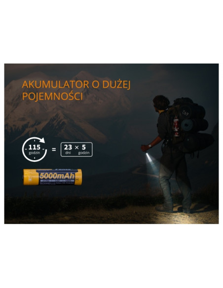 - Elementy zestawu latarki: akumulator Fenix ARB-L21-5000 21700 5000 mAh ,