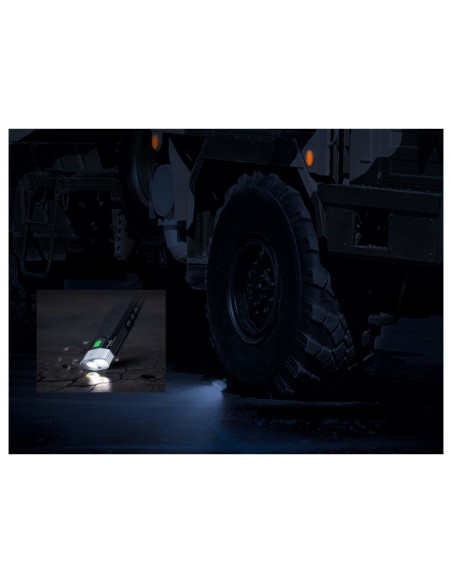 Dzięki funkcji wskaźnika poziomu akumulatora (dioda w podświetlanym włączniku głównym) oraz ostrzeżeniu o niskim napięciu możemy kontrolować pracę latarki i zarządzać pozostałym zapasem energii. Po włączeniu latarki, wskaźnik przez 3 sekundy informuje nas o stanie baterii.