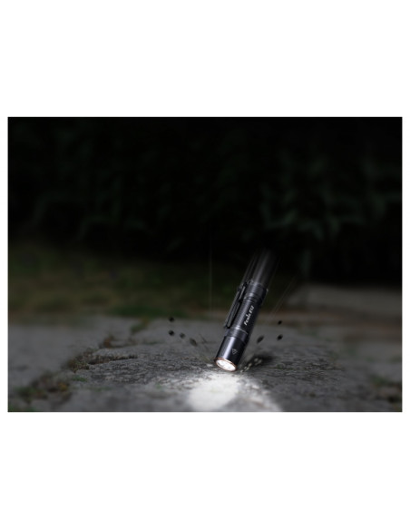 Korpus latarki Fenix E1 V2.0 wykonano z hartowanego aluminium, poddanego procesowi twardego anodowania HA-III, dzięki czemu tubus i głowica latarki są odporne na zarysowania, wytarcie i uszkodzenia mechaniczne.