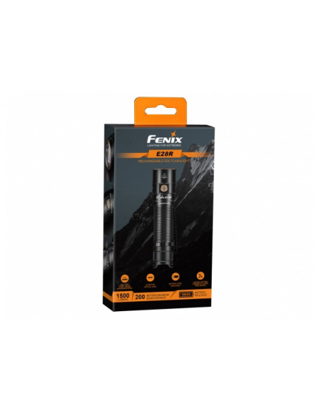 Fenix E28R to wszechstronna latarka edc o potężnym strumieniu światła 1500 lumenów, wyposażona w port szybkiego ładowania USB-C, praktyczny wskaźnik poziomu zasilania oraz akumulator ARB-L18-o pojemności 3400 mAh.