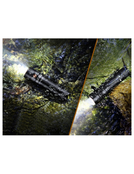 Latarka ma wysoką klasę szczelności IP68, jest zatem odporna na pełne zanurzenia wodzie na głębokości 2 m oraz upadek z wysokości 1 m.