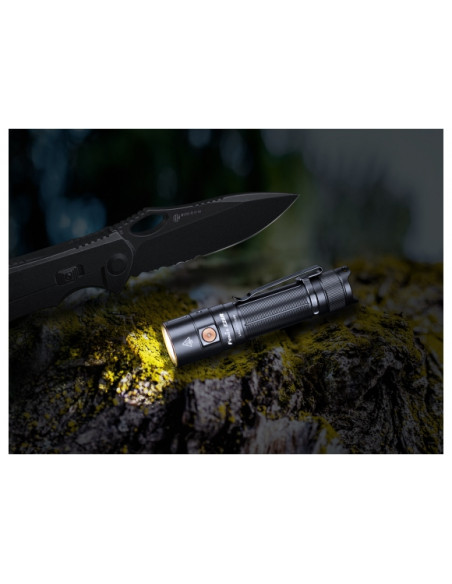 Do obsługi latarki służy jeden boczny przycisk (z metalu) służący do aktywacji i zmiany trybów światła. Wygodne usytuowanie włącznika oraz czytelny interfejs zapewniają wygodne i przyjazne użytkowanie latarki.