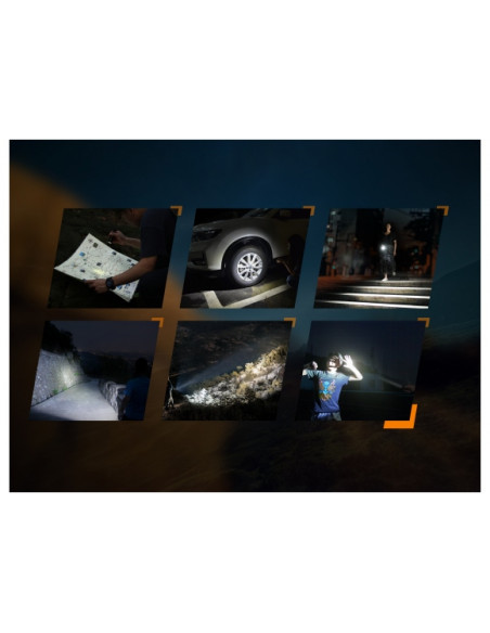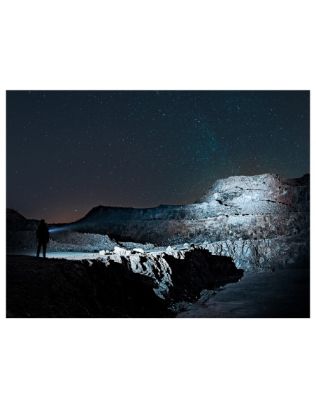 W latarce zastosowano ultracienką soczewkę kolimacyjną o wysokiej transmisji światła oraz odbłyśnik orange peel, które powodują, że strumień światła jest równomiernie i szeroko rozproszony (aż 94°), wydajnie oświetlając centrum oraz boki sceny przed nami.