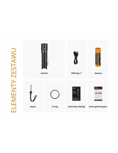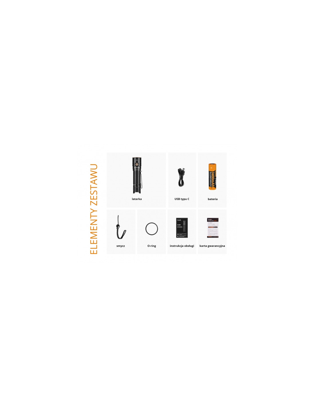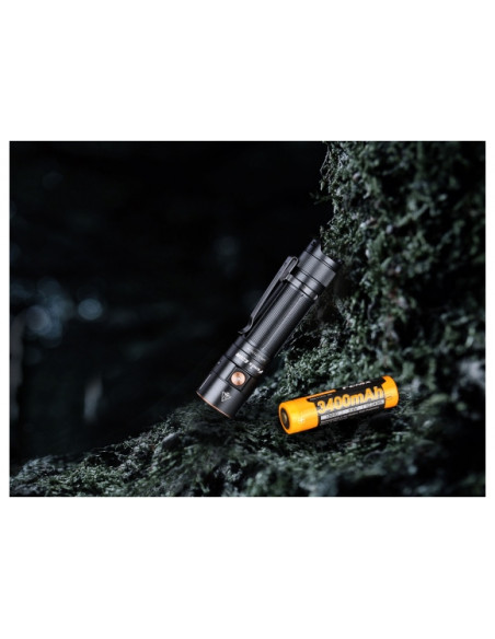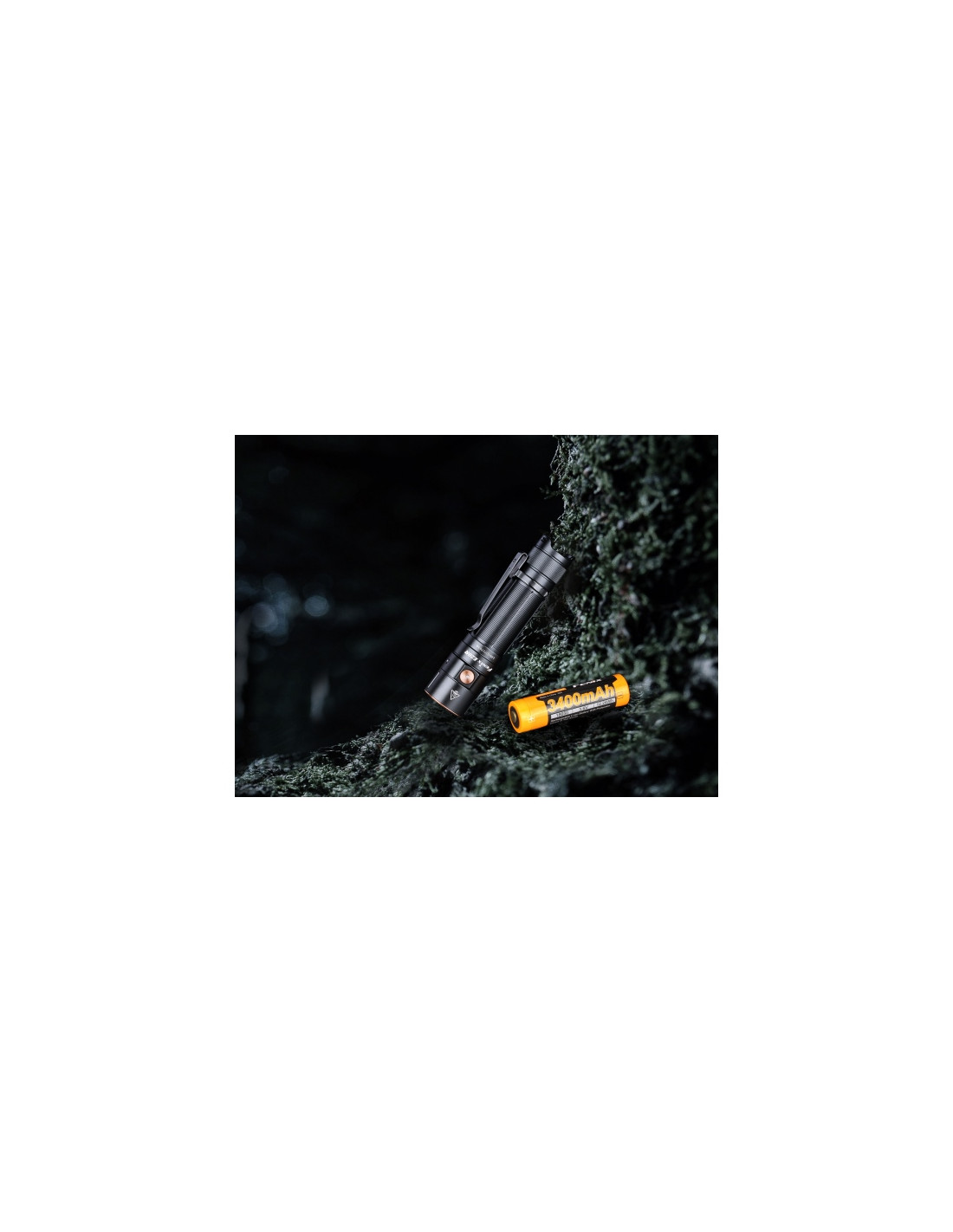 Fenix E28R może być zasilany za pomocą akumulatora 18650 lub dwóch jednorazowych baterii CR123. W komplecie otrzymujemy akumulator ARB-L18-o pojemności 3400 mAh