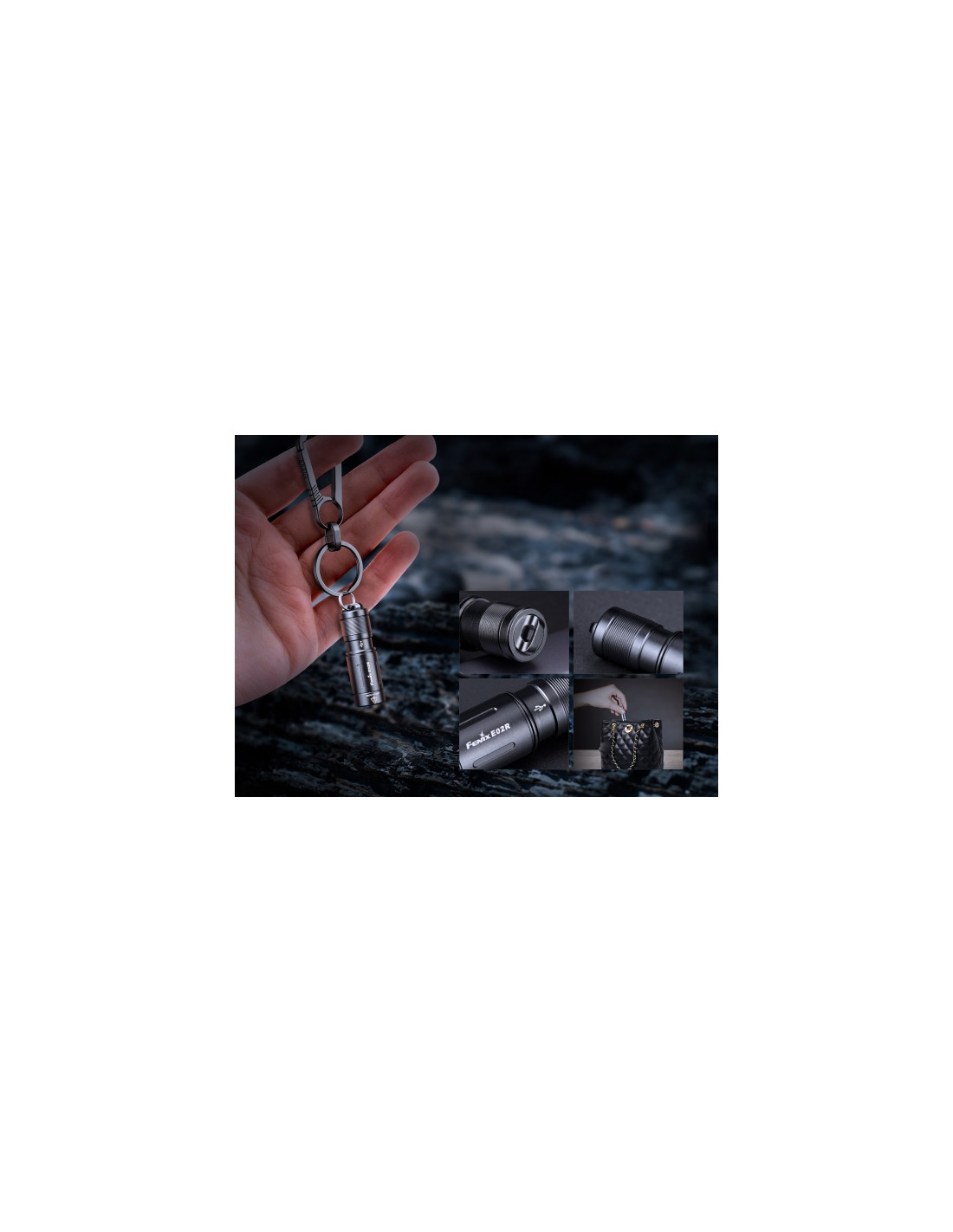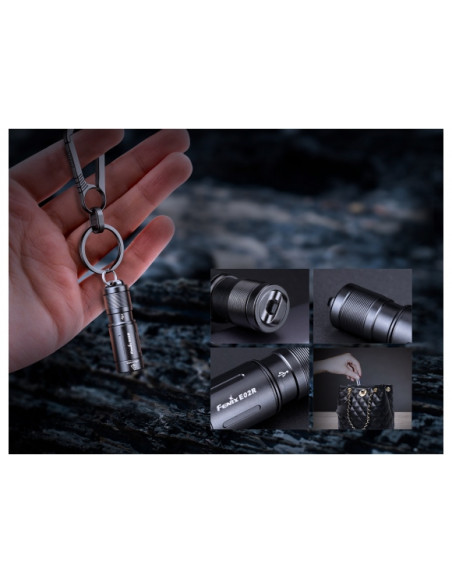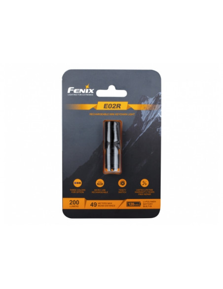 Fenix E02R to kieszonkowa latarka EDC w formie breloka, która emituje strumień 200 lumenów o zasięgu do 49 m, wyposażona w zintegrowany akumulator oraz port ładowania USB-C.