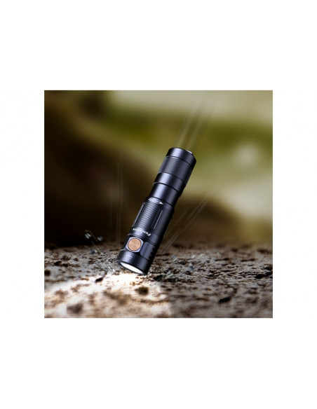 Fenix E09R to kieszonkowa latarka EDC w formie breloka, która emituje światło o strumieniu 600 lumenów, ma 5 przydatnych trybów świecenia, zasięg do 124 m oraz wbudowany akumulator ładowany przez port USB-C.