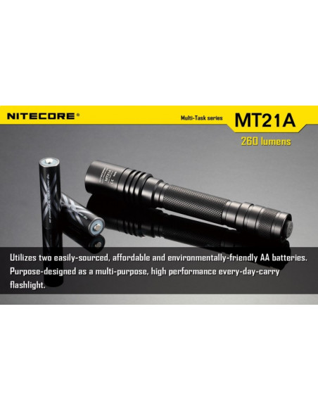 - Latarka zasilana przez dwie baterie AA (nie ma ich w zestawie, do zakupienia oddzielnie)
