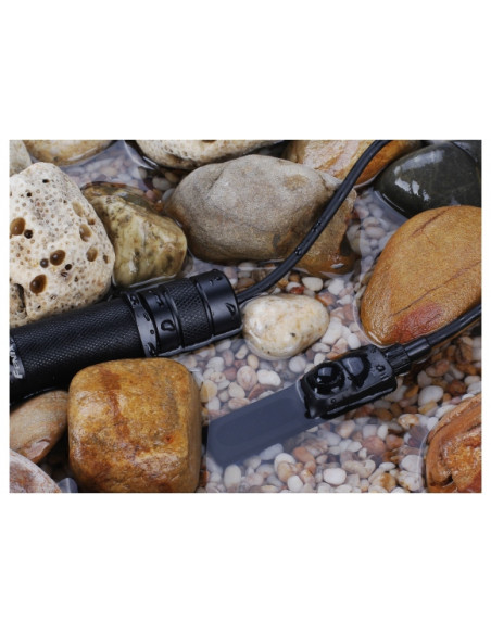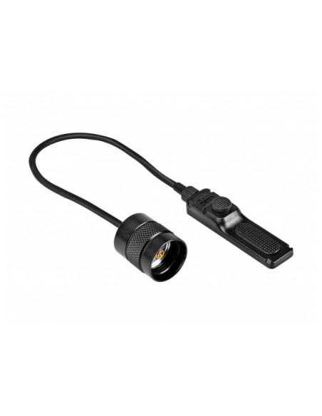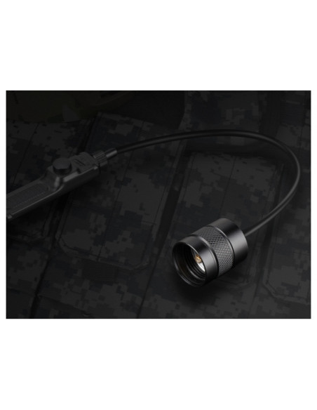 Adapter dokręcany do latarek (gwint TR22,4×1,5 mm) wykonano z aluminium T6. Metal poddano twardemu anodowaniu HA-III co gwarantuje bardzo wysoką odporność na ścieranie i zarysowania. Włącznik można mocować do broni na dwa sposoby tj.