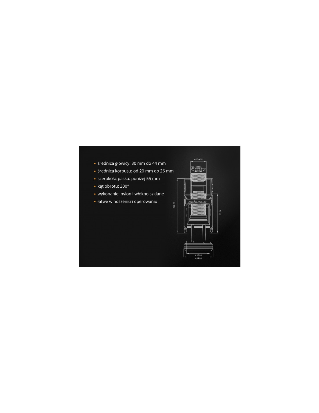 Zaczep do paska jest bardzo wygodny i użyteczny np. podczas patrolowania, treningu taktycznego i innych zajęć na świeżym powietrzu. Wykonany jest z nylonu i włókna szklanego, który charakteryzuje się niezawodnością i wytrzymałością. Szybkozłączka nadaje się do latarek o średnicy korpusu od 20 mm – 26 mm.