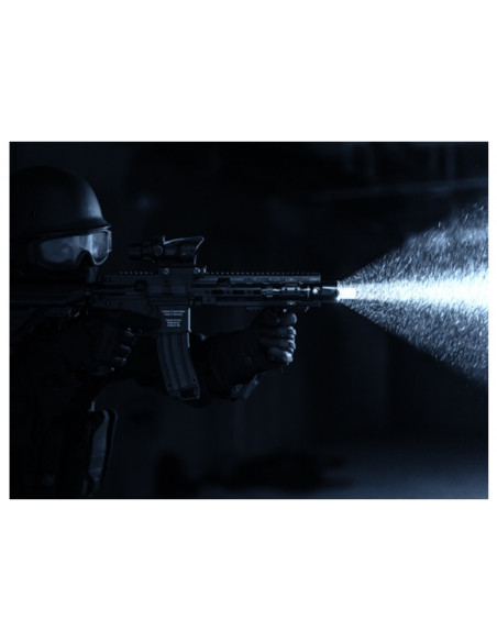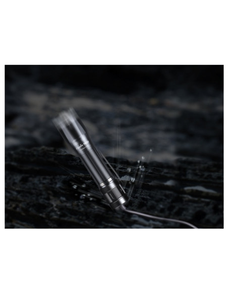 AER-05 został wyposażony w dwa przyciski tj. bezgłośny włącznik ciśnieniowy (bez kliku) o dużej czułości do aktywacji światła chwilowego i zmiany trybów oraz okrągły włącznik taktyczny (z klikiem) służący do inicjowania pracy latarki oraz ciągłego świecenia.