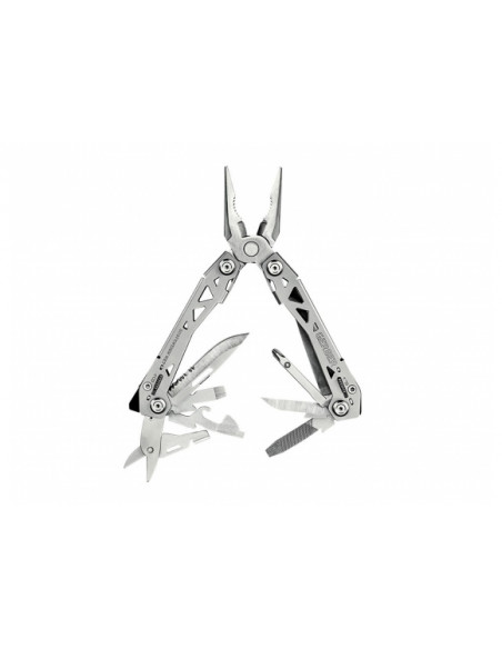 Gerber Suspension to multitool o wielkości 108 mm wykonany w całości ze stali. Szkieletowa konstrukcja ramion zmniejsza ciężar narzędzia oraz nadaje mu nowoczesnego stylu.