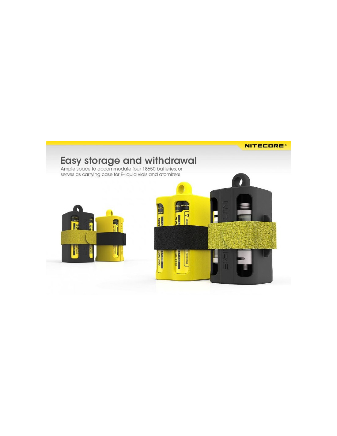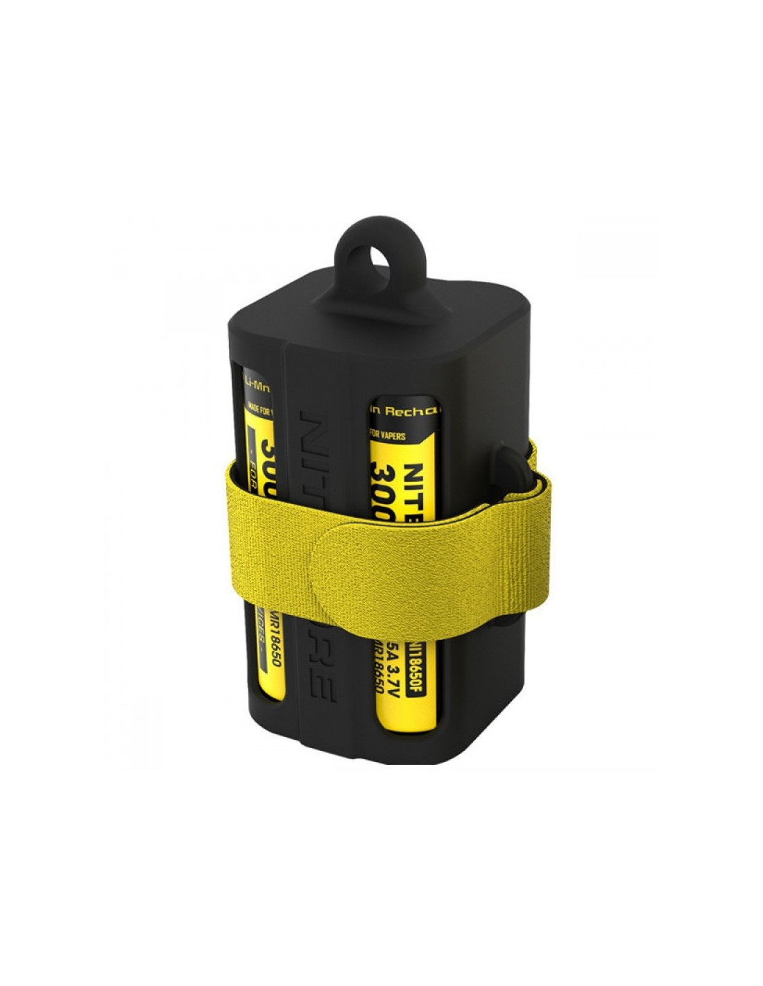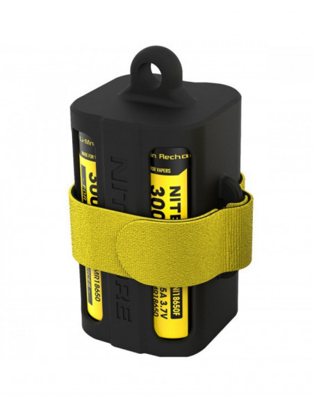 Pojemnik (uchwyt) na cztery akumulatory 18650 wykonany z wytrzymałej gumy. Do każdego organizera baterii dołączony jest pasek na rzep.