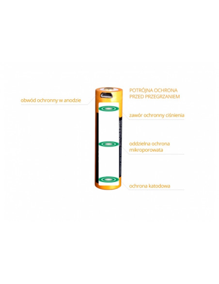 Producent zastosował wielopoziomowy system zabezpieczeń, który w maksymalnym stopniu wydłuża żywotność i zapewnia najwyższy poziom bezpieczeństwa akumulatora.