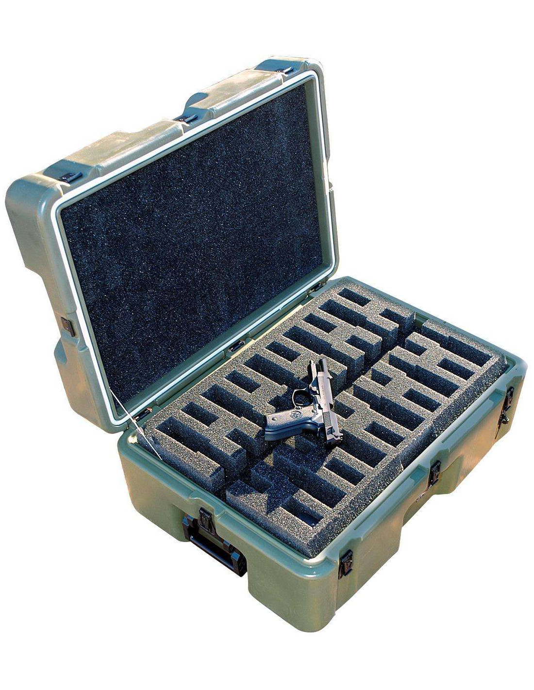 Z nami Twoja broń jest zawsze bezpieczna i gotowa do działania. Wybierz naszą skrzynię transportową na pistolety magazynki, by zyskać pewność, że Twoja broń jest chroniona przez najwyższej jakości opakowanie dostępne na rynku. Wykonujemy projekty dla każdej ilości sztuk w konfiguracji oraz niezależnie od modelu broni. Do każdego projektu podchodzimy indywidualnie. Gąbkę wycinamy według projektu, po ustaleniu z klientem rozmiaru walizki i ilości broni. Używamy klasycznych skrzyń Peli™ Case, Peli™ Storm i Peli™ Air w wielu formatach.