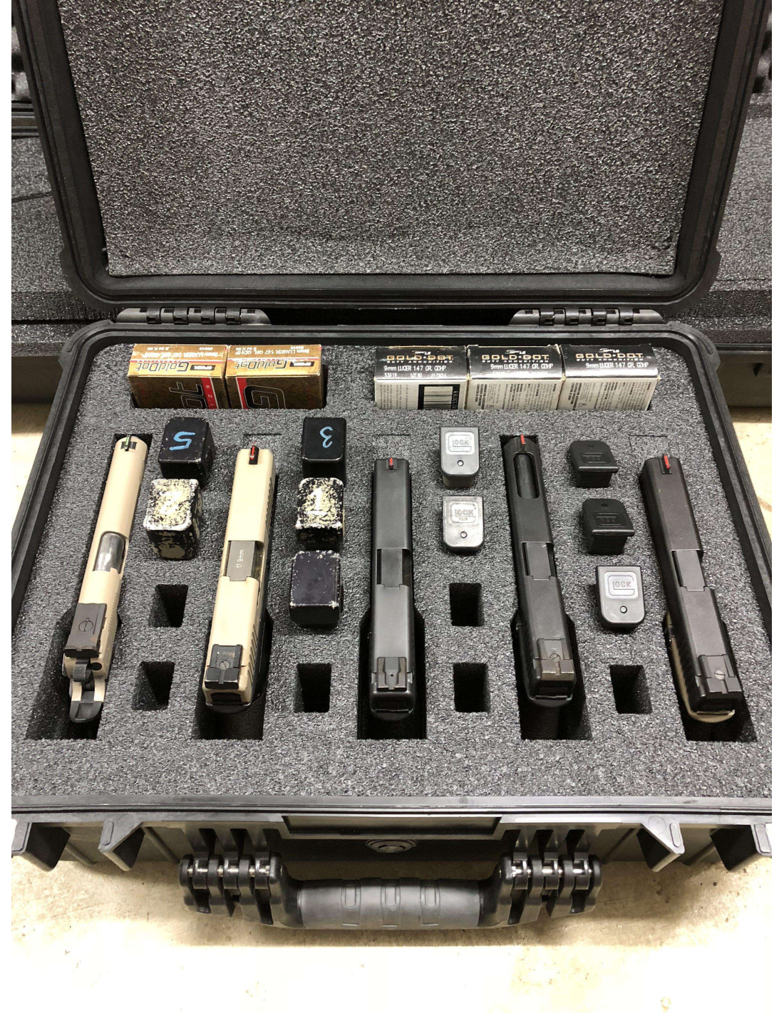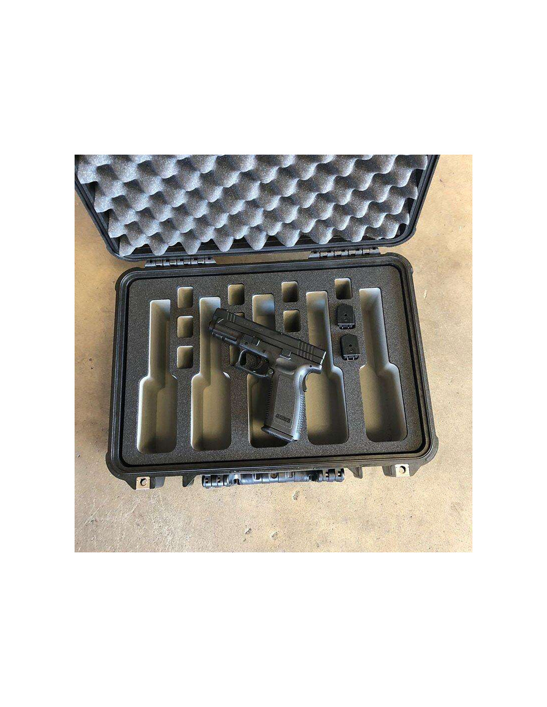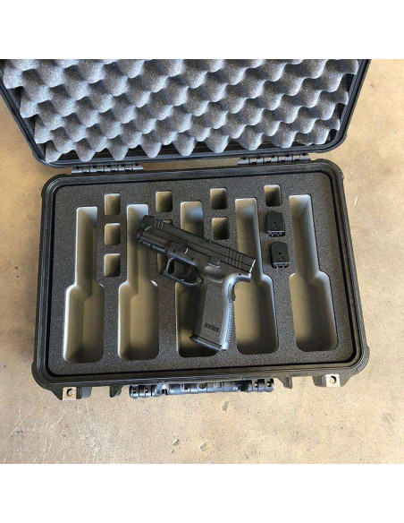 Wykonane z solidnych skrzyń Peli, nasze opakowania transportowe oferują najwyższy standard ochrony. Wewnątrz skrzyni znajdziesz dokładnie wycięte wkłady, które doskonale pasują do Twojej broni i magazynków. Każdy pistolet i magazynek ma swoje miejsce, co gwarantuje bezpieczne i ergonomiczne przechowywanie. Nasze standardowe wersje obejmują skrzynie na 6, 10 lub 20 pistoletów, z dodatkowym miejscem dla 12, 20 lub 40 magazynków.