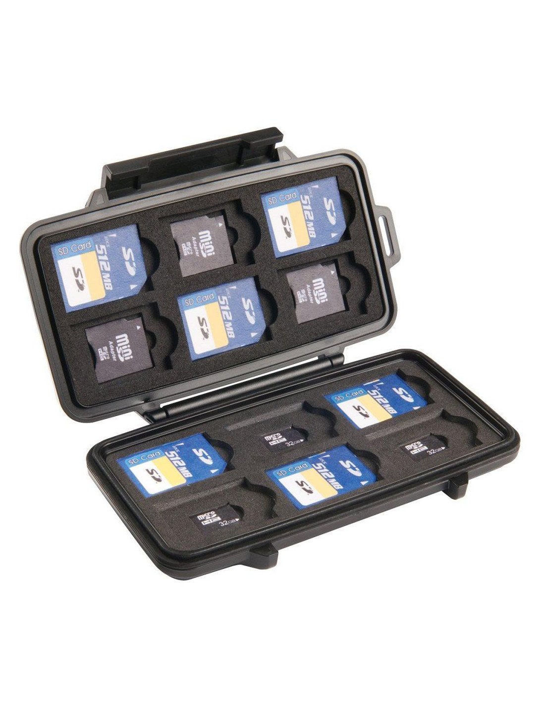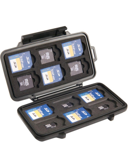 Etui na karty pamięci Peli™ 0915 cechuje się niesamowitą wytrzymałością, wodoodpornością i pyłoszczelnością. Case jest lekki i wytrzymały. Zamykana na solidny zatrzask z możliwością powieszenia go na karabińczyku. Wszystkie metalowe części wykonane są ze stali nierdzewnej. Zamknięcie wykonane jest z żywicy ABS, reszta z Poliwęglanu. Krawędzie skrzynki są zaokrąglone co rozprasza siłę uderzenia. Wnętrze jest wyłożone dedykowanym wypełnieniem które stabilizuje przedmiot w środku. Etui zmieści 12 kart SD, 6 kart mini SD i 6 kart micro SD jednocześnie! Dożywotnia gwarancja producenta na jakość wykonania.