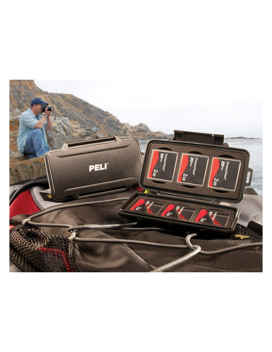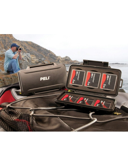 Case Peli™ 0945 cechuje się niesamowitą wytrzymałością, wodoodpornością i pyłoszczelnością. Case jest lekki i wytrzymały. Zamykana na solidny zatrzask z możliwością powieszenia go na karabińczyku. Wszystkie metalowe części wykonane są ze stali nierdzewnej. Zamknięcie wykonane jest z żywicy ABS, reszta z Poliwęglanu. Krawędzie skrzynki są zaokrąglone co rozprasza siłę uderzenia. Wnętrze jest wyłożone dedykowanym wypełnieniem które stabilizuje przedmiot w środku. Case zmieści 6 kompaktowych kart pamięci jednocześnie! Dożywotnia gwarancja producenta na jakość wykonania.