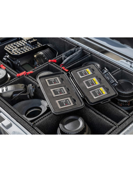 Peli™ 0965 jest wyposażone w precyzyjnie wykonane gniazda na karty, które nie tylko chronią karty przed uszkodzeniami mechanicznymi, ale również pomagają utrzymać porządek wśród różnych typów kart. Dzięki temu, zarządzanie Twoimi kartami staje się proste i wygodne.