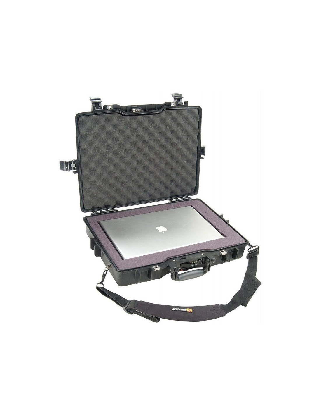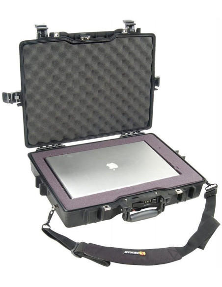 Walizka na laptopa Peli™ 1495 cechuje się niesamowitą wytrzymałością i pyłoszczelnością. Jest wyposażona w zawór wyrównujący ciśnienie powstające przy przemieszczaniu się pod wodą lub samolotem, dodatkowo uszczelniony wkładką z GORE-TEXu. Walizka jest lekka i wytrzymała, co zawdzięcza trójwarstwowej strukturze. Zamykana na dwustopniowe zatrzaski z możliwością zabezpieczenia jej kłódką. Wszystkie metalowe części wykonane są ze stali nierdzewnej. Zawiasy posiadają dodatkowe ożebrowanie chroniące je przed uszkodzeniem. Krawędzie skrzynki są zaokrąglone co rozprasza siłę uderzenia. Są również dodatkowo wzmocnione. Uchwyt jest wyścielony gumą która gwarantuje komfort niesienia. Skrzynka występuje bez wypełnienia, z wypełnieniem gąbkowym pick&plug oraz z wypełnieniami wykonanymi na zamówienie. Można również zainstalować specjalny panel montażowy. Dożywotnia gwarancja producenta na jakość wykonania.