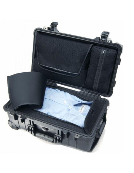 Skrzynia Peli™ 1510LOC cechuje się niesamowitą wytrzymałością, wodoszczelnością i pyłoszczelnością. Jest wyposażona w zawór wyrównujący ciśnienie powstające przy przemieszczaniu się pod wodą lub samolotem, dodatkowo uszczelniony wkładką z GORE-TEXu. W standardzie znajduje się zamontowany w wieku organizer do przechowywania laptopa oraz drugi organizer na ubrania. Skrzynia jest lekka i wytrzymała, co zawdzięcza trójwarstwowej strukturze. Zamykana na dwustopniowe zatrzaski z możliwością zabezpieczenia jej kłódką. Wszystkie metalowe części wykonane są ze stali nierdzewnej. Zawiasy posiadają dodatkowe ożebrowanie chroniące je przed uszkodzeniem. Krawędzie skrzynki są zaokrąglone co rozprasza siłę uderzenia. Są również dodatkowo wzmocnione. Skrzynka wyposażona jest w specjalne wypełnienie do transportu ubrań, akcesoriów oraz laptopa. Skrzynia wyposażona jest w poliuretanowe kółka transportowe z łożyskami. Uchwyty górny, boczny i do ciągnięcia. Dożywotnia gwarancja producenta na jakość wykonania.