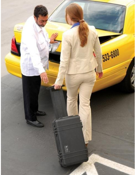 Walizka Peli 1510LOC zapewnia również wygodę mobilności. Wyposażona w wygodny uchwyt teleskopowy i wytrzymałe kółka, umożliwia łatwe przemieszczanie się po lotniskach, ulicach czy terenach trudno dostępnych.