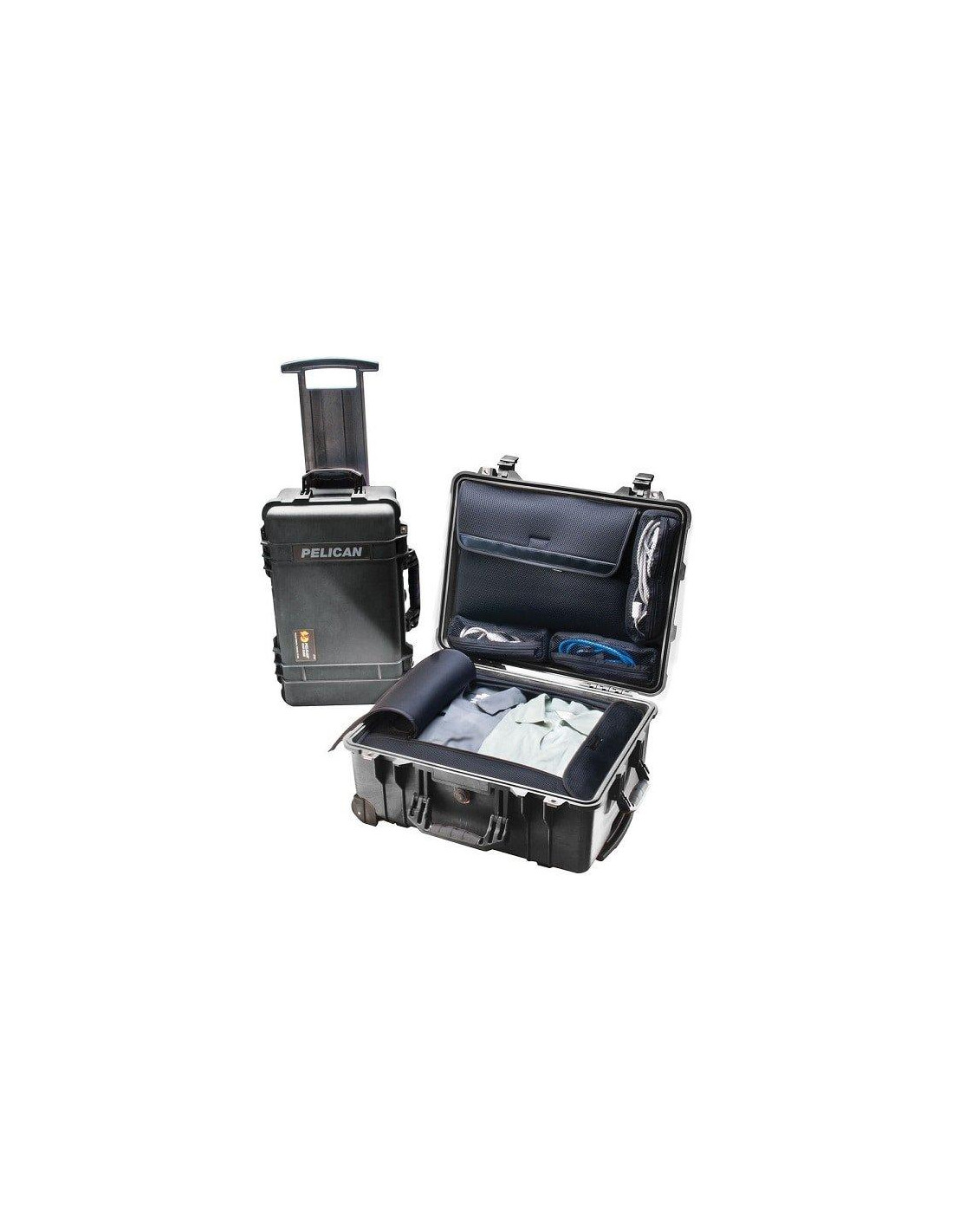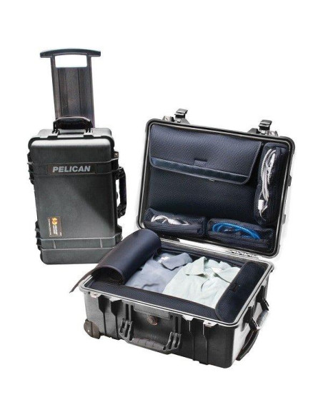 Walizka z kieszenią na laptopa Peli™ 1560LOC cechuje się niesamowitą wytrzymałością, wodoszczelnością i pyłoszczelnością. Jest wyposażona w zawór wyrównujący ciśnienie powstające przy przemieszczaniu się pod wodą lub samolotem, dodatkowo uszczelniony wkładką z GORE-TEXu. W standardzie znajduje się zamontowany w wieku organizer do przechowywania laptopa oraz drugi organizer na ubrania. Skrzynia jest lekka i wytrzymała, co zawdzięcza trójwarstwowej strukturze. Zamykana na dwustopniowe zatrzaski z możliwością zabezpieczenia jej kłódką. Wszystkie metalowe części wykonane są ze stali nierdzewnej. Zawiasy posiadają dodatkowe ożebrowanie chroniące je przed uszkodzeniem. Krawędzie skrzynki są zaokrąglone co rozprasza siłę uderzenia. Są również dodatkowo wzmocnione. Skrzynka występuje bez wypełnienia, z wypełnieniem gąbkowym pick&plug oraz z wypełnieniami wykonanymi na zamówienie. Można również zainstalować specjalny panel montażowy. Skrzynia wyposażona jest w poliuretanowe kółka transportowe z łożyskami. Uchwyty górny, boczny i do ciągnięcia. Dożywotnia gwarancja producenta na jakość wykonania.
