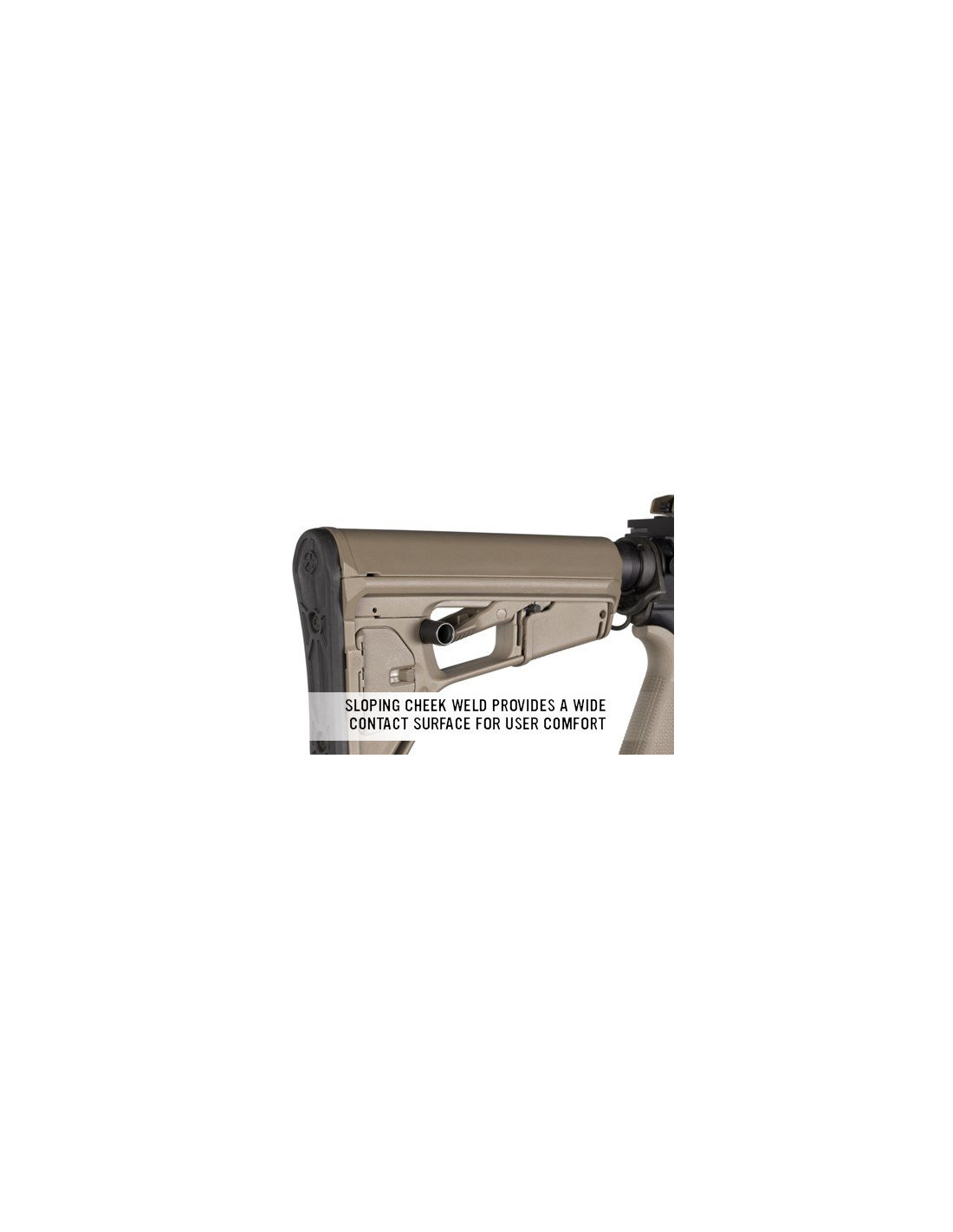 Projekt powstały z myślą o współczesnym polu walki, dzięki specjalnemu wykończeniu kolby poprawia stabilność broni podczas noszenia kamizelki taktycznej.