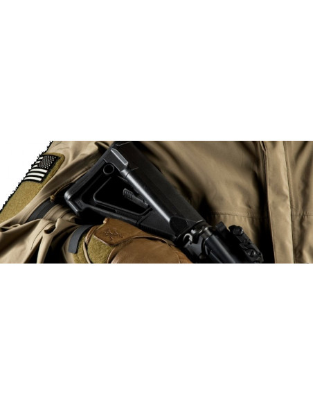 Kolba STR Carbine Stock dostosowana jest z myślą o poprawie stabilności podczas noszenia kamizelki taktycznej.
