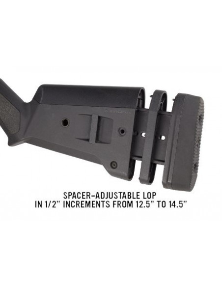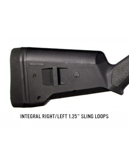 Kolba Magpul SGA przeznaczona jest jako zamiennik do strzelb Mossberg 500/590/590A1. Model posiada regulowaną stopkę, chroniącą przed siłą odrzutu. Kolba wpływa na komfort i pewny chwyt w czasie strzelania. Dodatkowo posiada możliwość podnoszenia bak policzkowych ułatwiając tym strzelanie z zamontowanymi przyrządami optycznymi.