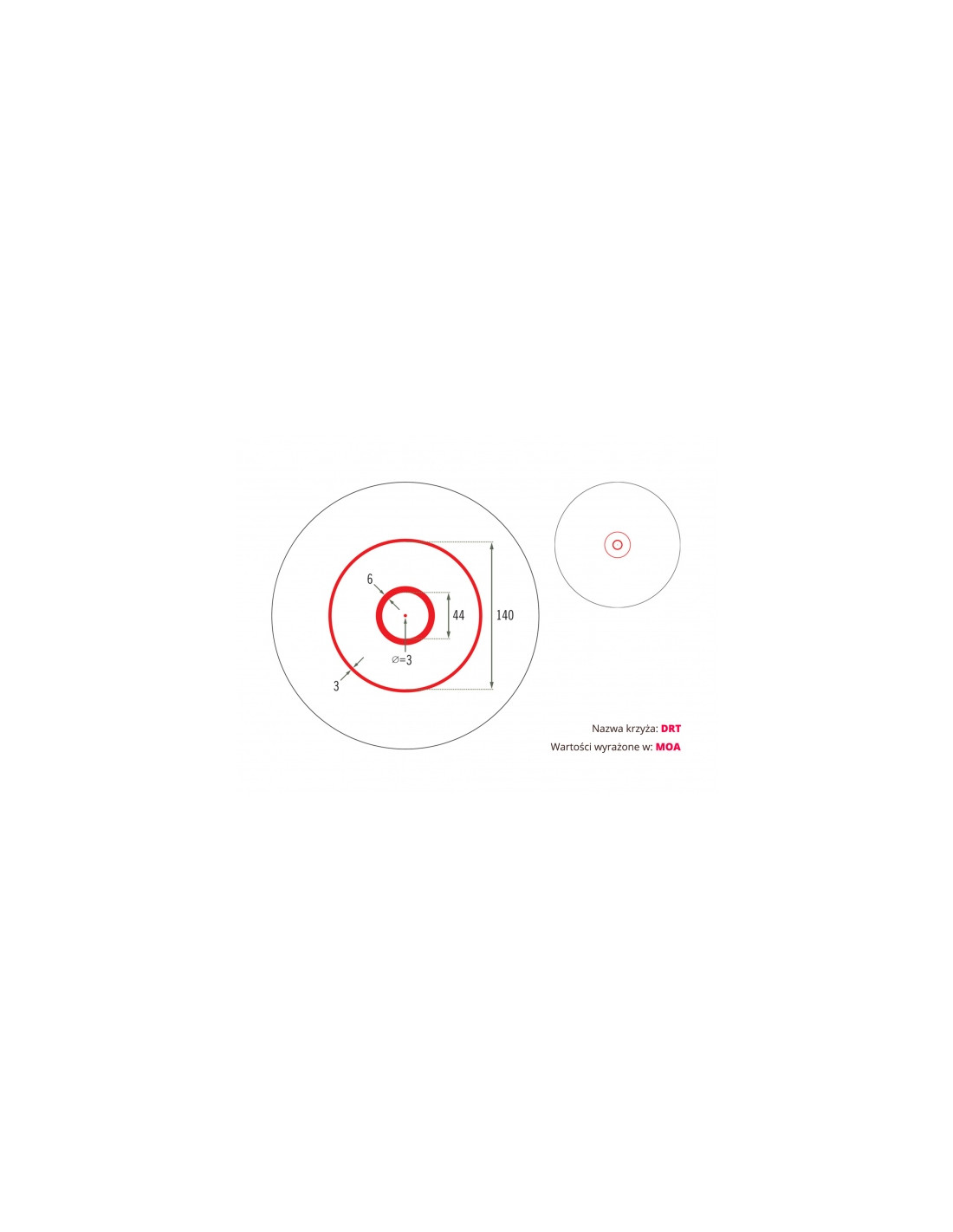 - Typ krzyża celowniczego (siatki): DRT MOA