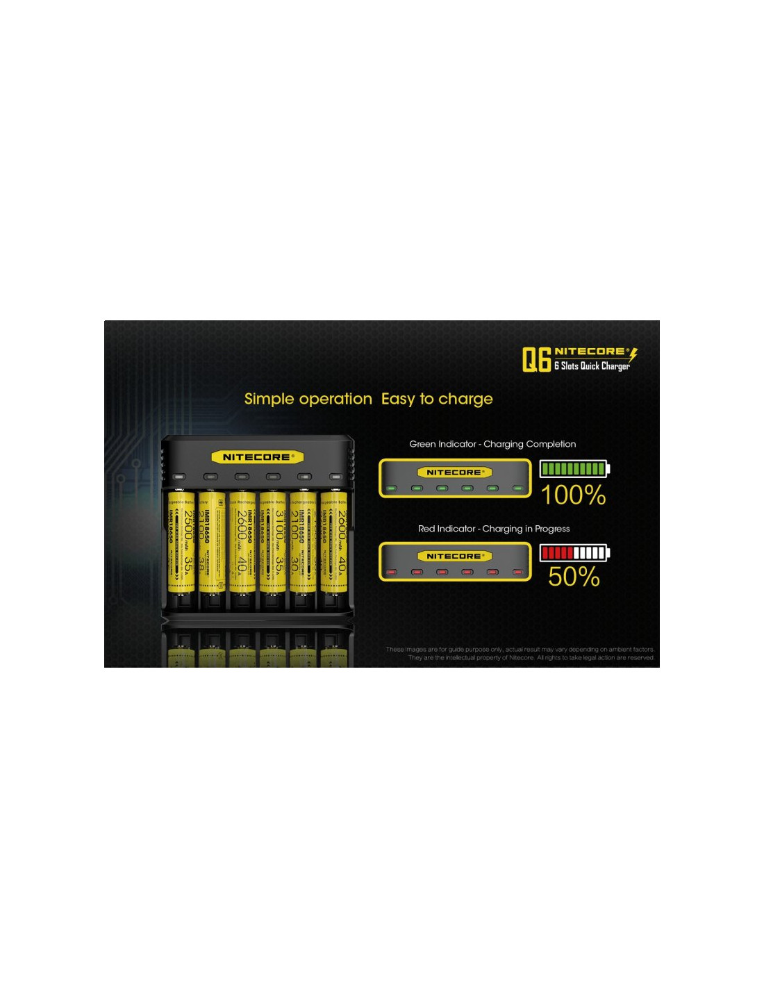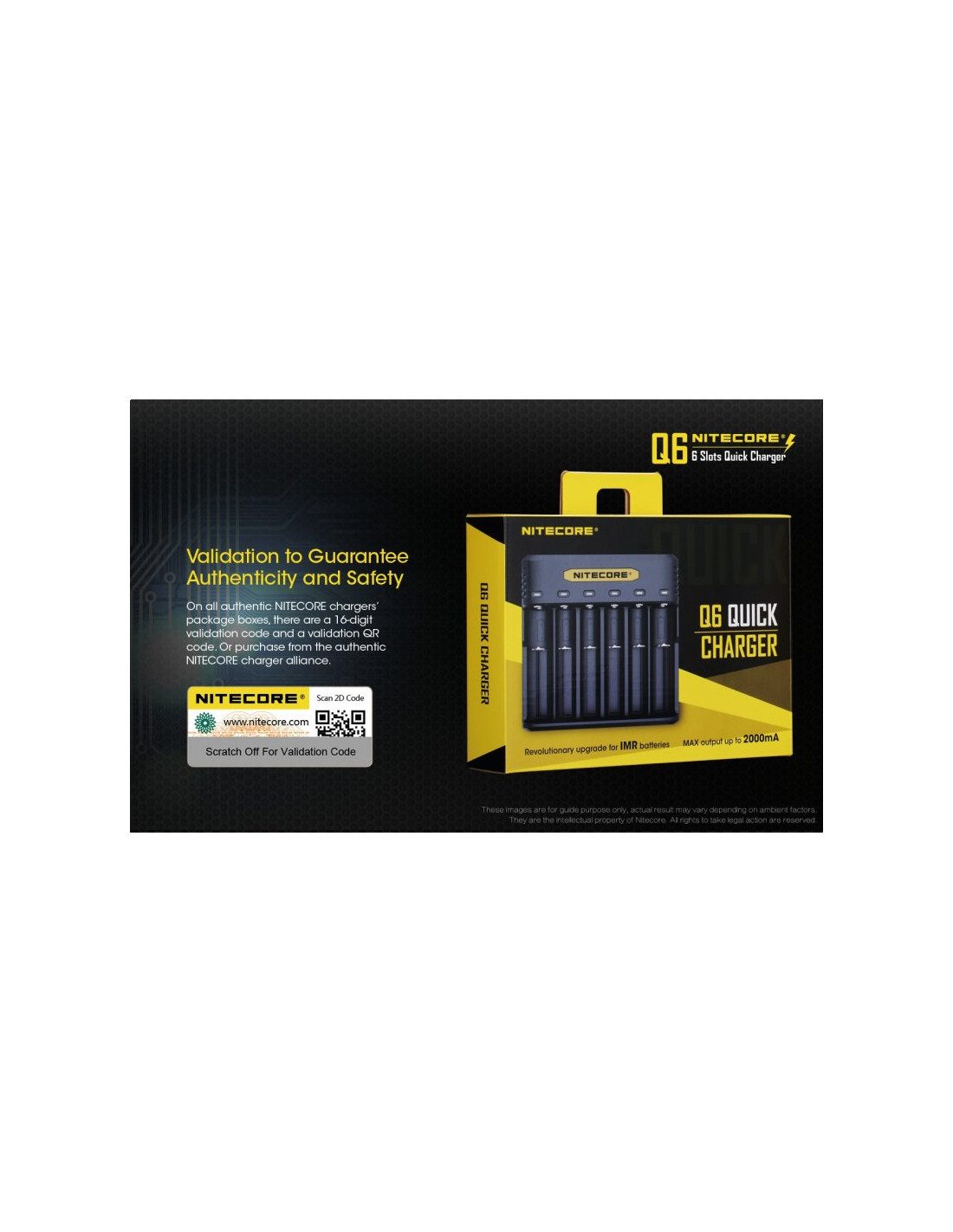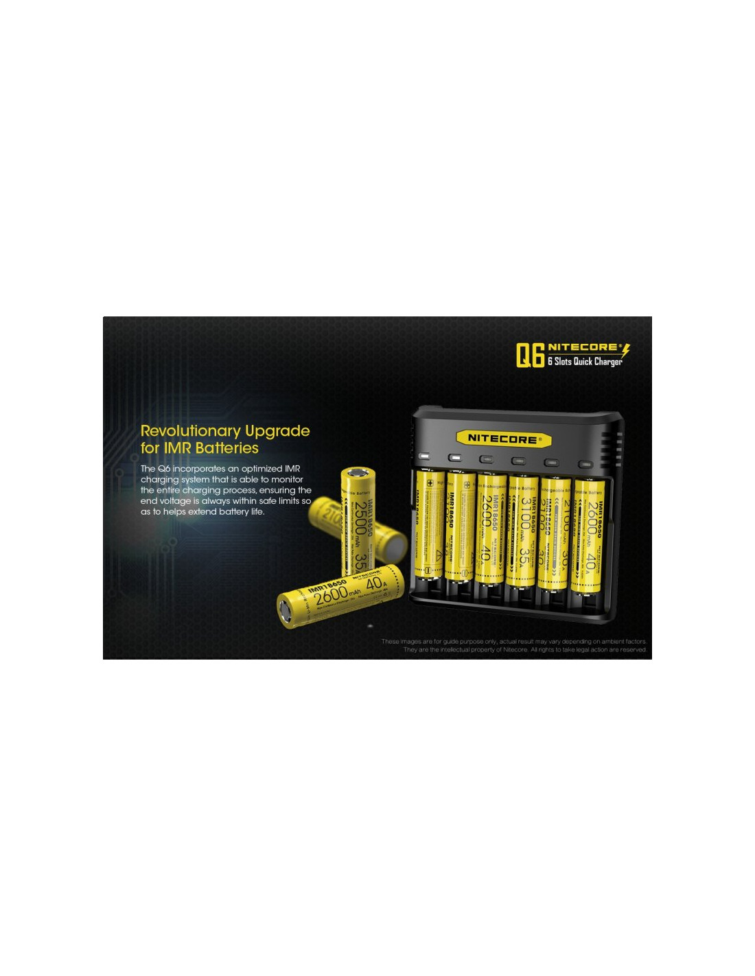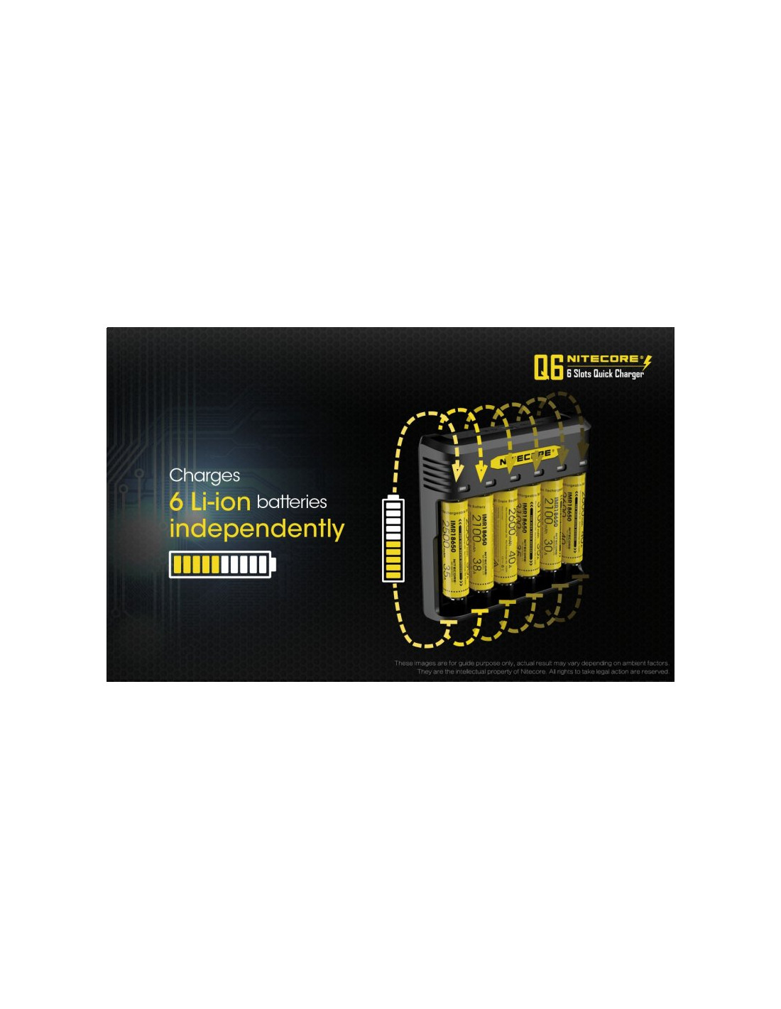 Ładowarka Nitecore Q6 to małe i łatwe w przenoszeniu urządzenie, które umożliwia swojemu użytkownikowi naładowanie do 6 akumulatorków naraz. Kompatybilne z większością akumulatorów li-on / IMR dostępnych na rynku. Dzięki niewielkiej wadze i rozmiarom idealnie sprawdza się zarówno do użytku w podróży jak i w domu.