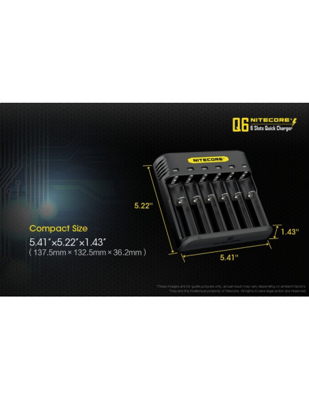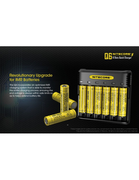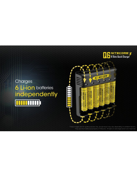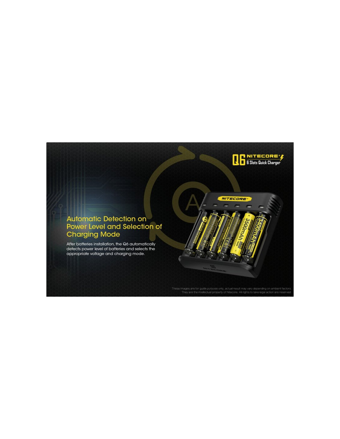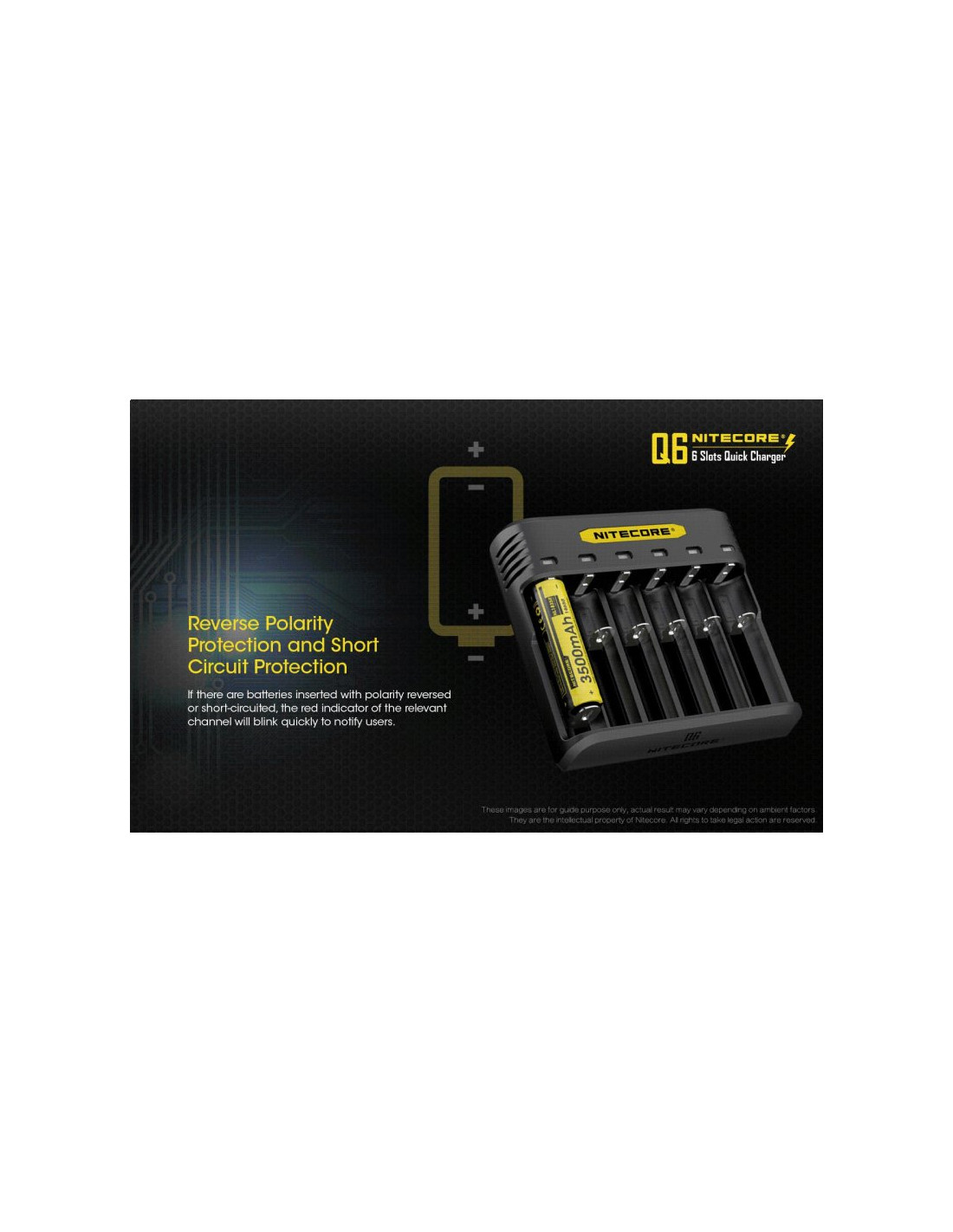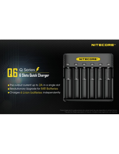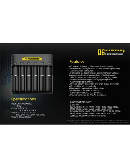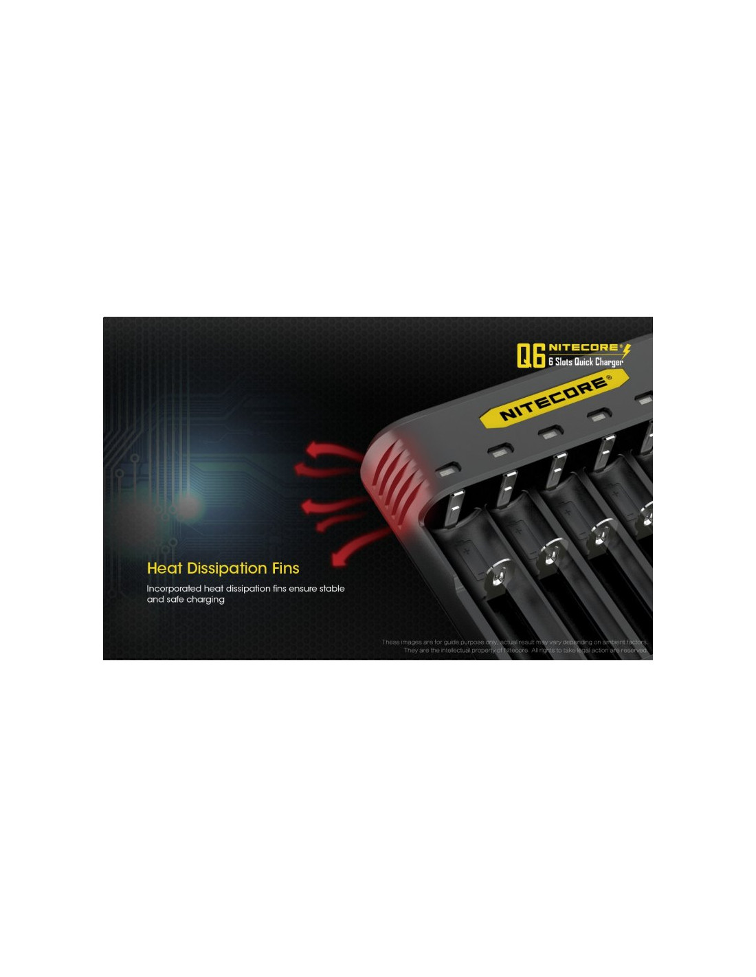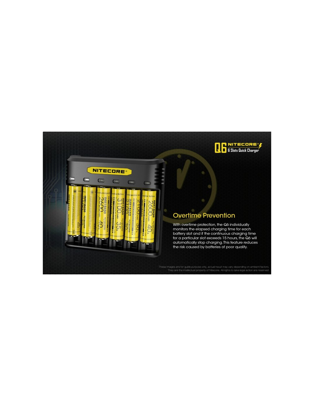 Ładowarka Nitecore Q6 to małe i łatwe w przenoszeniu urządzenie, które umożliwia swojemu użytkownikowi naładowanie do 6 akumulatorków naraz. Kompatybilne z większością akumulatorów li-on / IMR dostępnych na rynku. Dzięki niewielkiej wadze i rozmiarom idealnie sprawdza się zarówno do użytku w podróży jak i w domu.