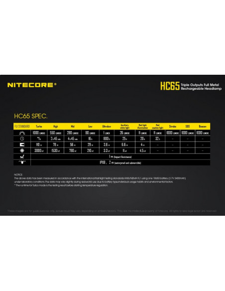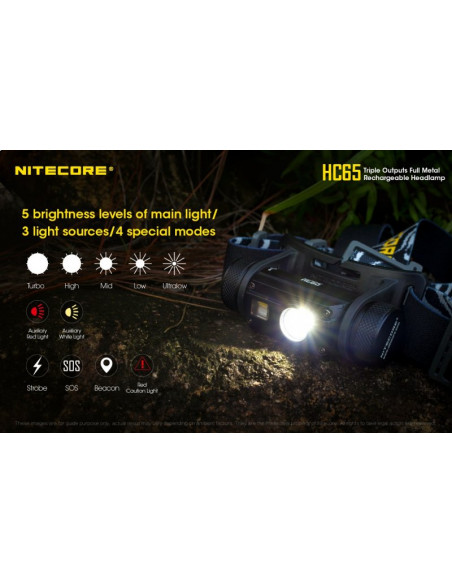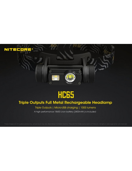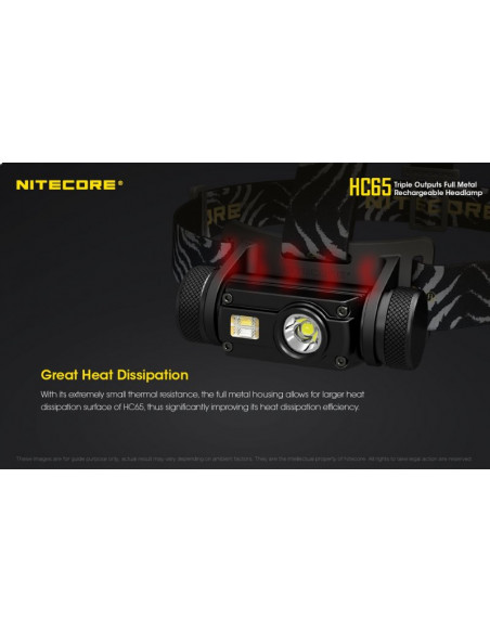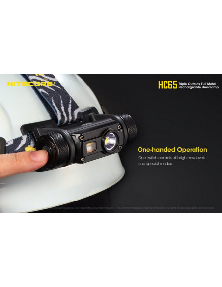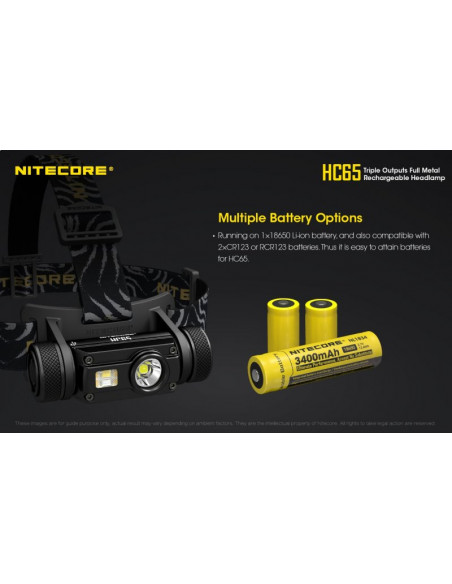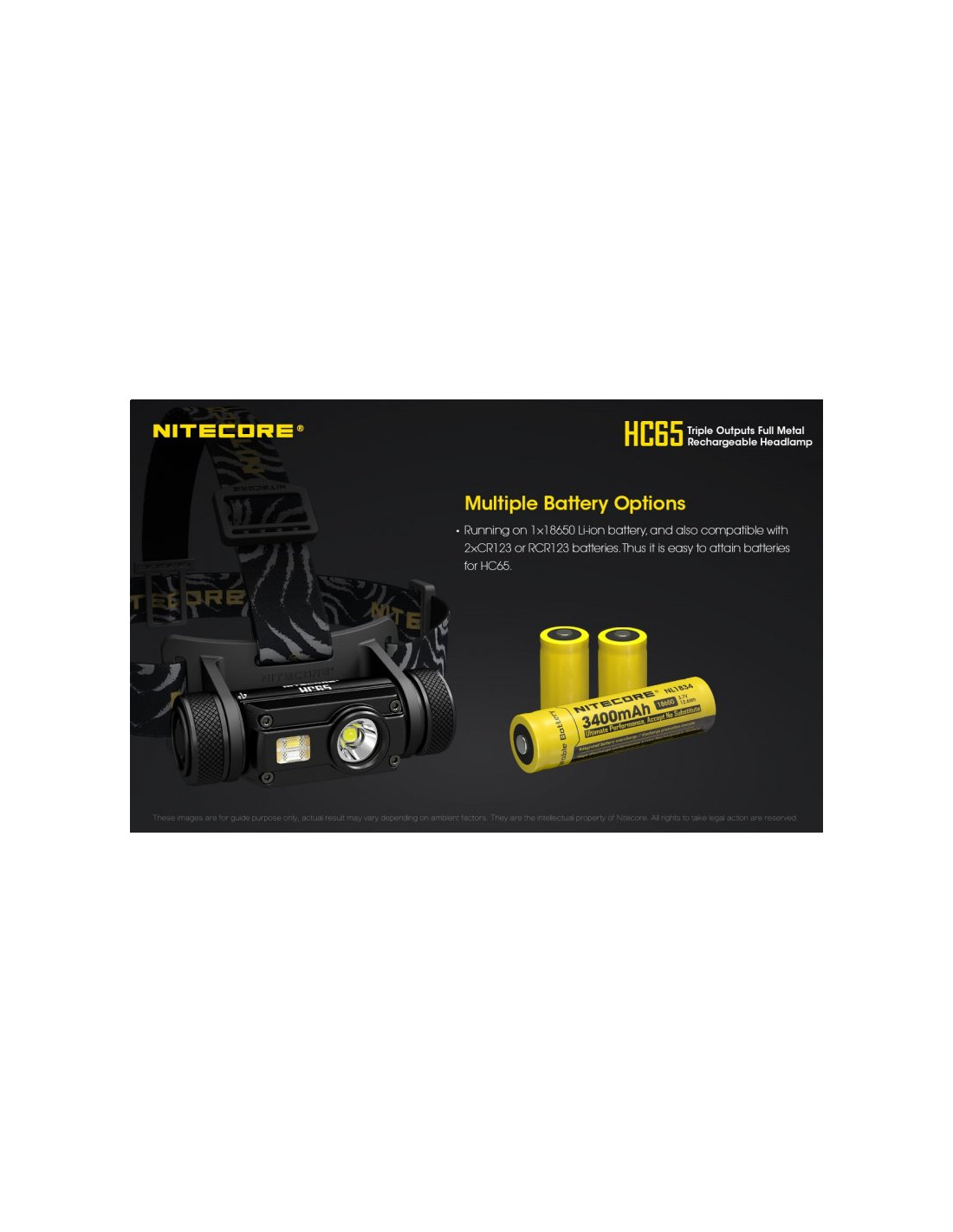 Czołówka HC65 zasilana jest przez jedno ogniwo 18650 lub dwie bateria CR123.
