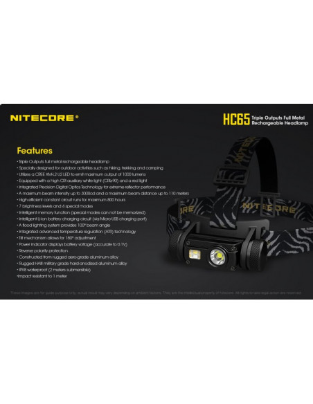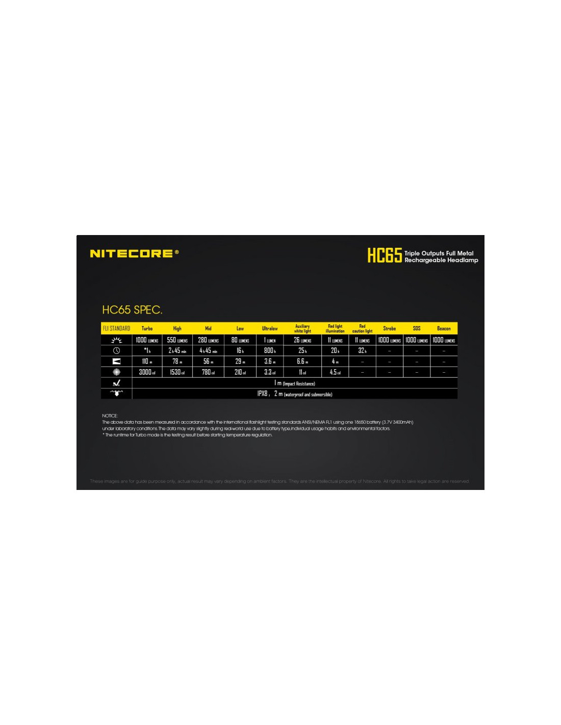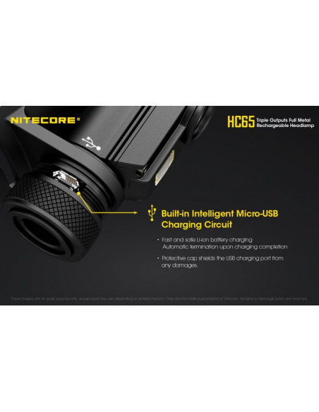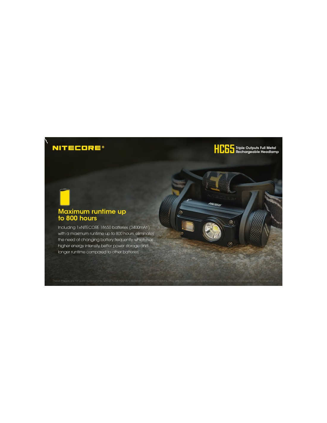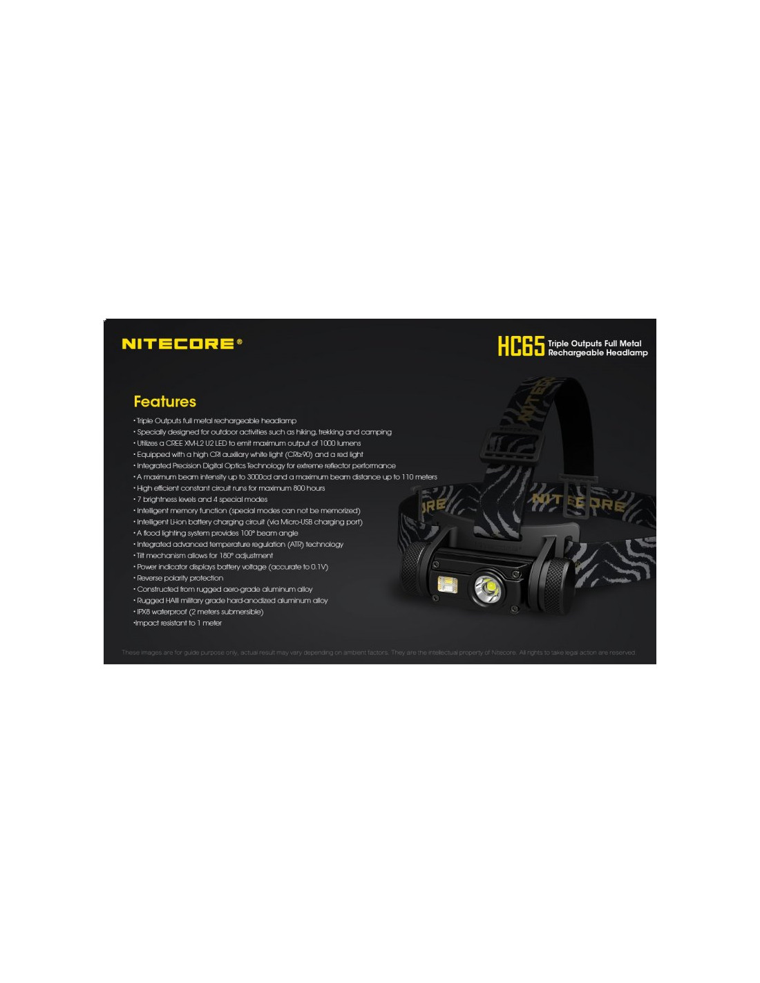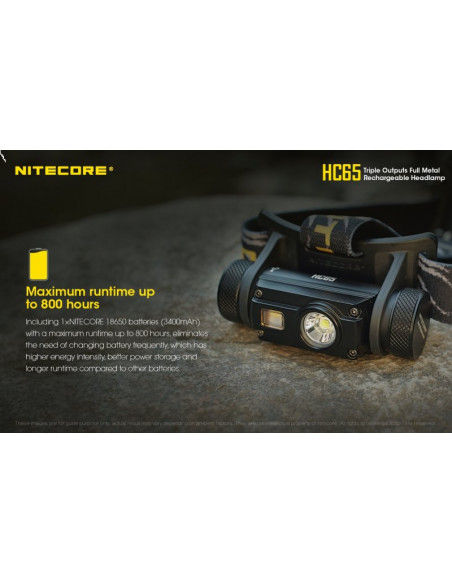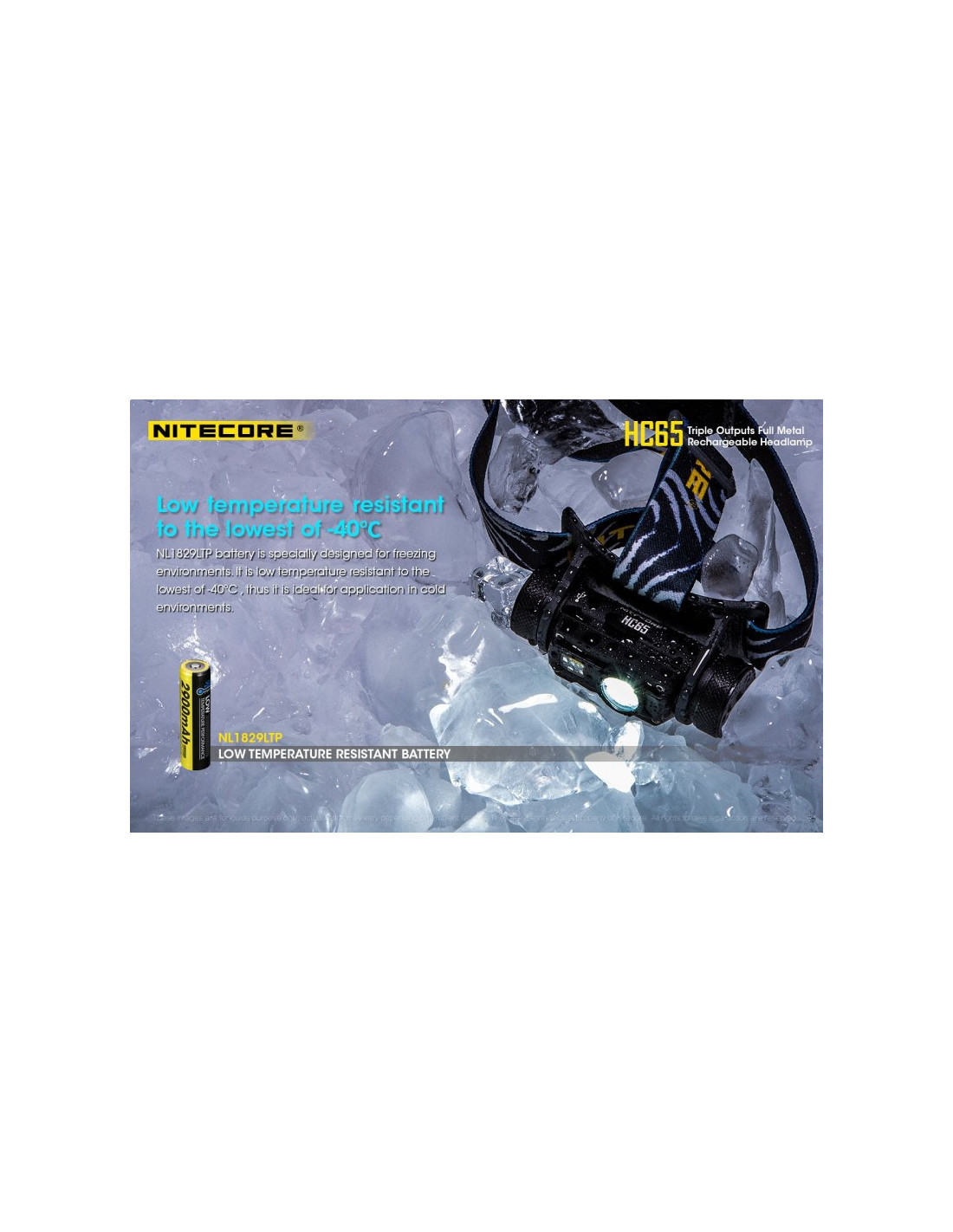 W zestawie z latarką znajduje się pojemny akumulator Nitecore 18650 (NL1834) o pojemności 3400 mAh. Dużą zaletą tej czołówki jest slot USB, dzięki któremu latarkę można naładować podłączając do ładowarki w samochodzie, ładowarki sieciowej lub laptopa.