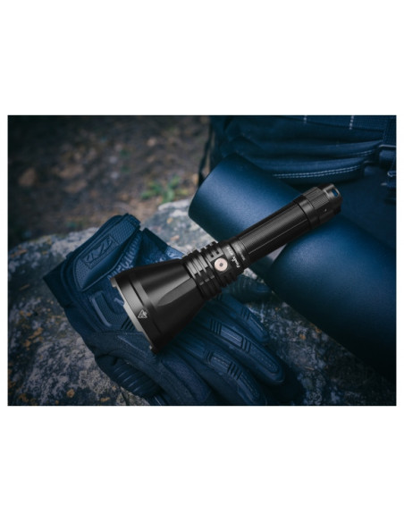 Fenix HT18 to niezawodny szperacz, który bardzo efektywnie oświetli ścianę lasu, zbocze góry, może być także stosowany jako latarką na broń myśliwską.