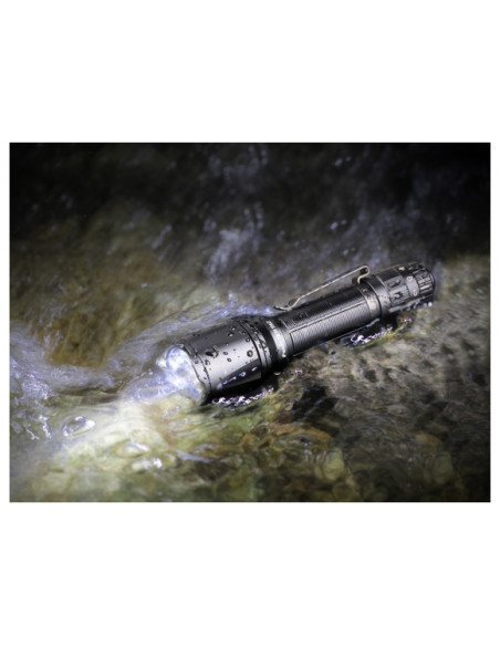 Latarka ma wysoką klasę ochrony IP68, jest zatem odporna na pył, kurze, pełne zanurzenia wodzie na głębokości 2 m oraz upadek z wysokości 1 m.