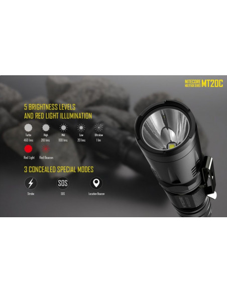 - Tryby specjalne: lokalizator Beacon, SOS, Stroboskop