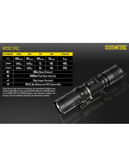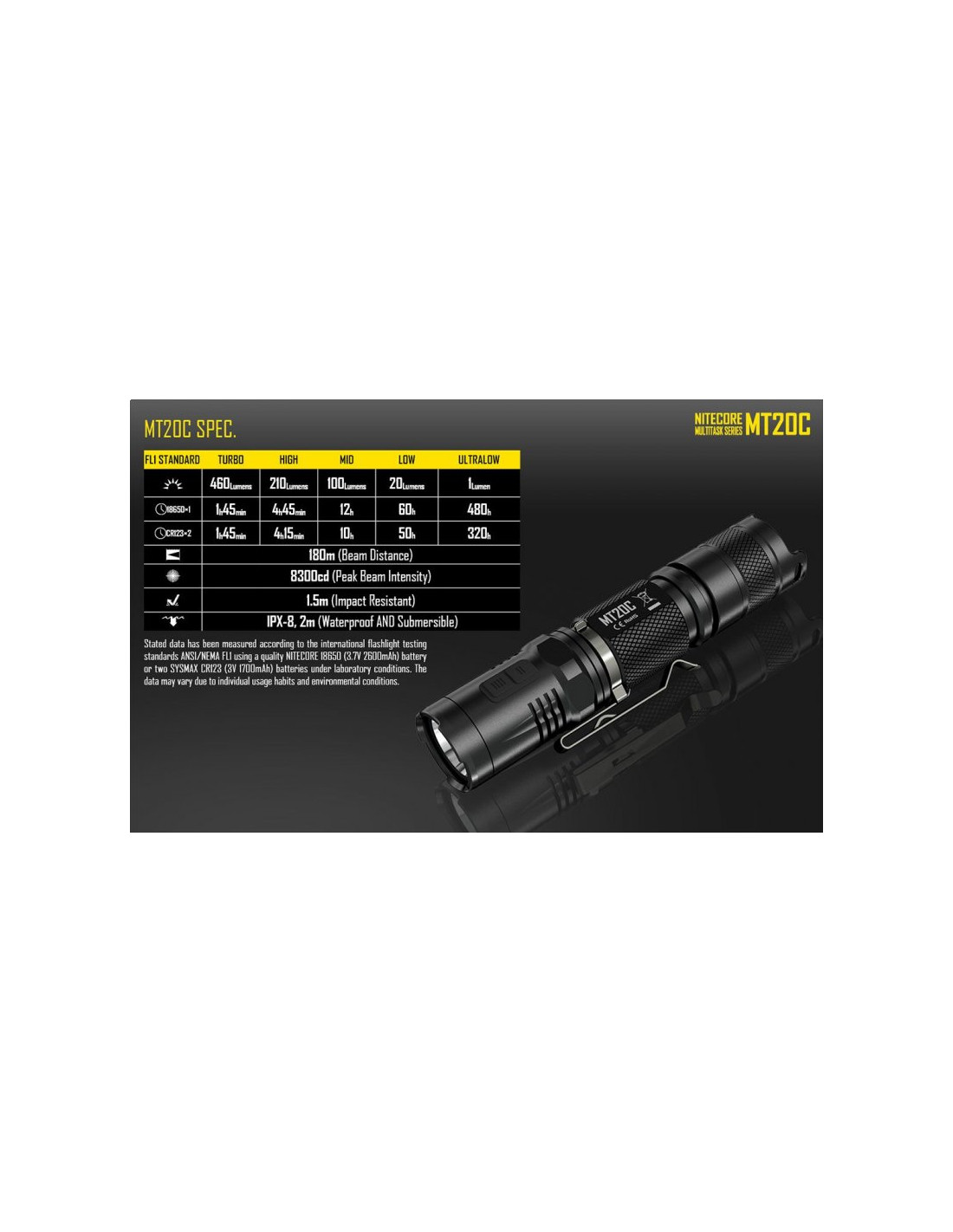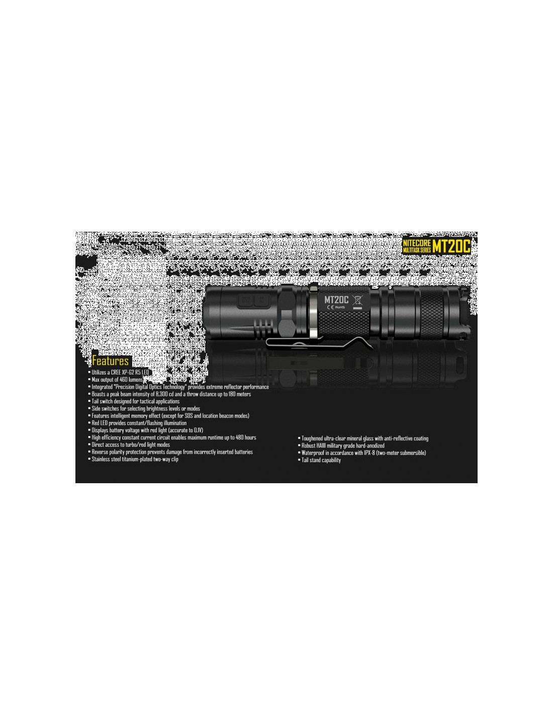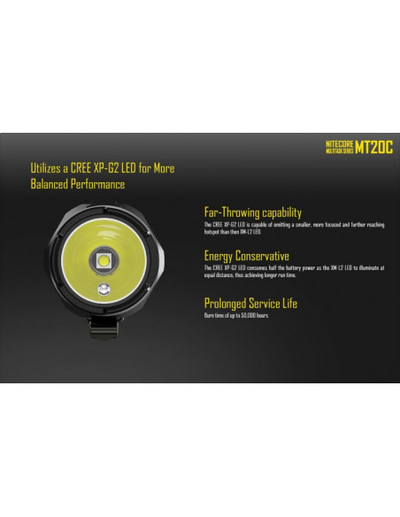 - Zasilanie: 1x akumulator 18650 (brak w zestawie) lub 2x bateria CR123 (brak w zestawie)