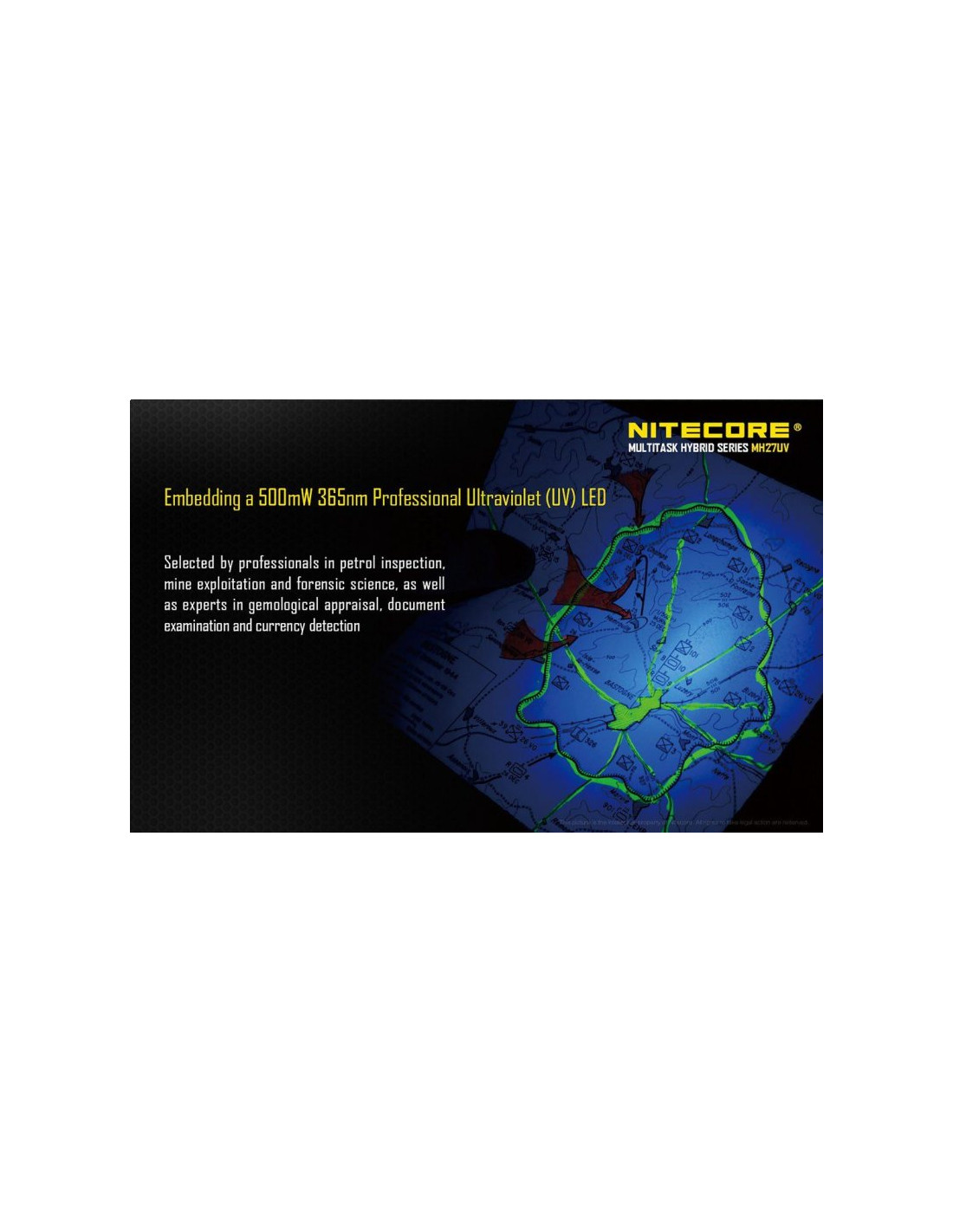 Latarka MH27 oferuje nie tylko standardowe światło o maksymalnej mocy 1000 lumenów, ale również światło ultrafioletowe, które przydaje się w różnych sytuacjach, np. podczas sprawdzania banknotów, podczas czynności operacyjnych policji czy podczas poszukiwań.