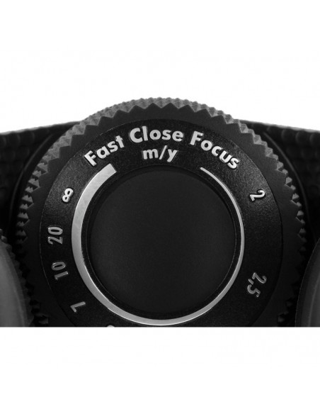 Warto zwrócić uwagę na wybitną ergonomię, bardzo precyzyjne pokrętło ostrości ze skalą odległościową oraz wodoodporność do głębokości 3 metrów.
