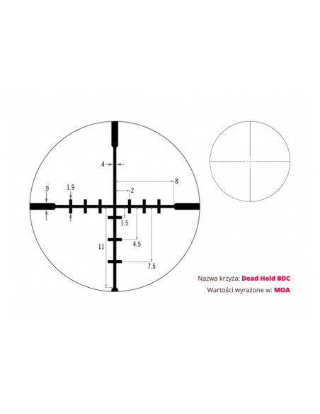 - Typ krzyża celowniczego (siatki): Dead-Hold® BDC MOA