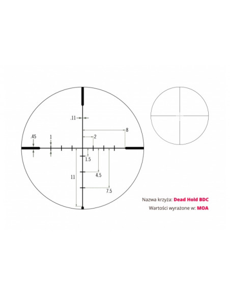 - Typ krzyża celowniczego (siatki): Dead-Hold® BDC MOA