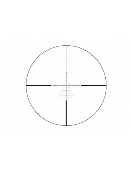 - Krzyż na pierwszym planie - skala krzyża jest proporcjonalna do wielkości przybliżonego celu. Stałe podziałki pozwalają na dokładne namierzenie celu na całym zakresie przybliżenia