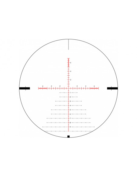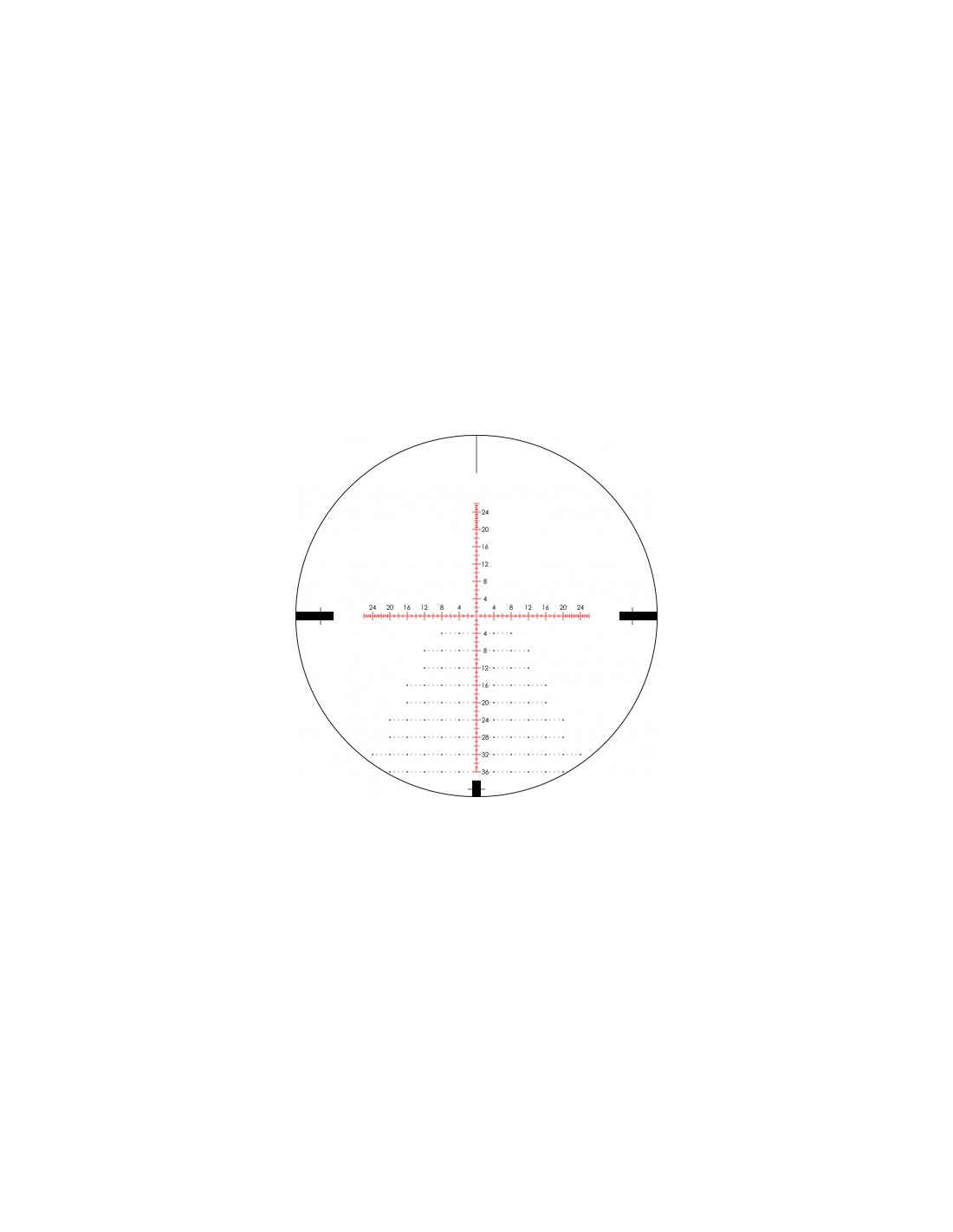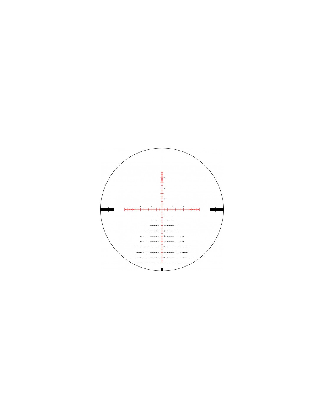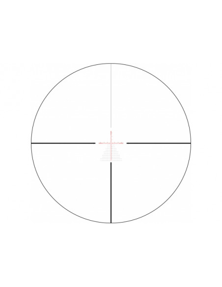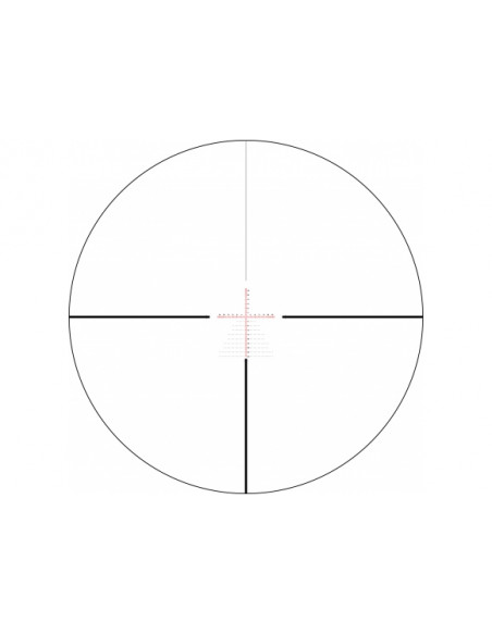 - Krzyż na pierwszym planie - skala krzyża jest proporcjonalna do wielkości przybliżonego celu. Stałe podziałki pozwalają na dokładne namierzenie celu na całym zakresie przybliżenia