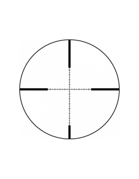 - Krzyż na drugim planie - Skala siatki celowniczej utrzymuje ten sam rozmiar niezależnie od ustawionego powiększenia, a podziałka jest najbardziej dokładna najwyższym