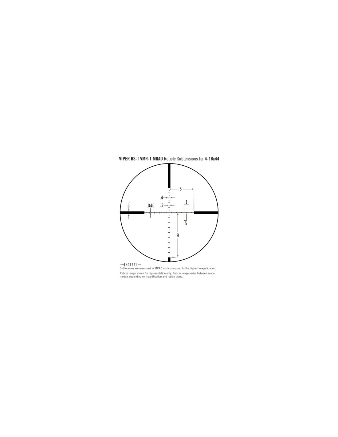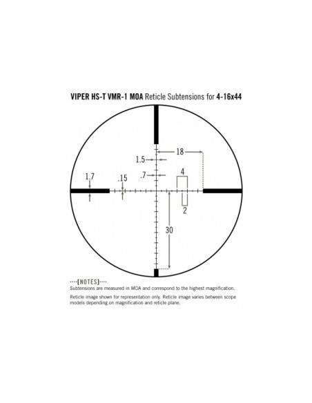 - Typ krzyża celowniczego (siatki): VMR-1 MOA, VMR-1 MRAD