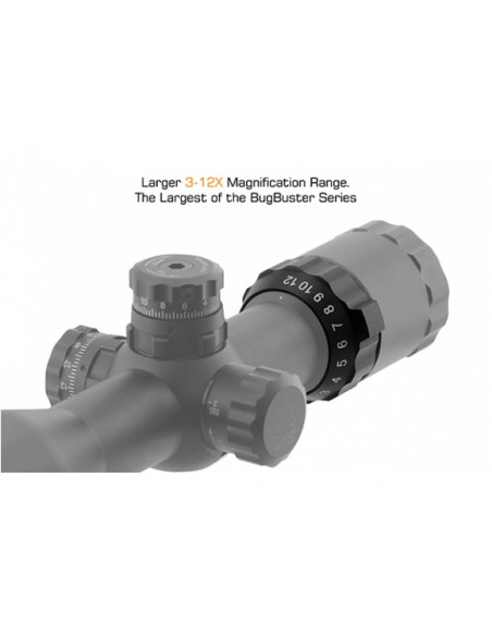 Leapers 3-12×32 1" Bugbuster to budżetowa luneta taktyczna wyposażona w boczną regulację paralaksy, podświetlany krzyż MIL-DOT oraz soczewki z powłokami Emerald zapewniającymi klarowny i jasny obraz.